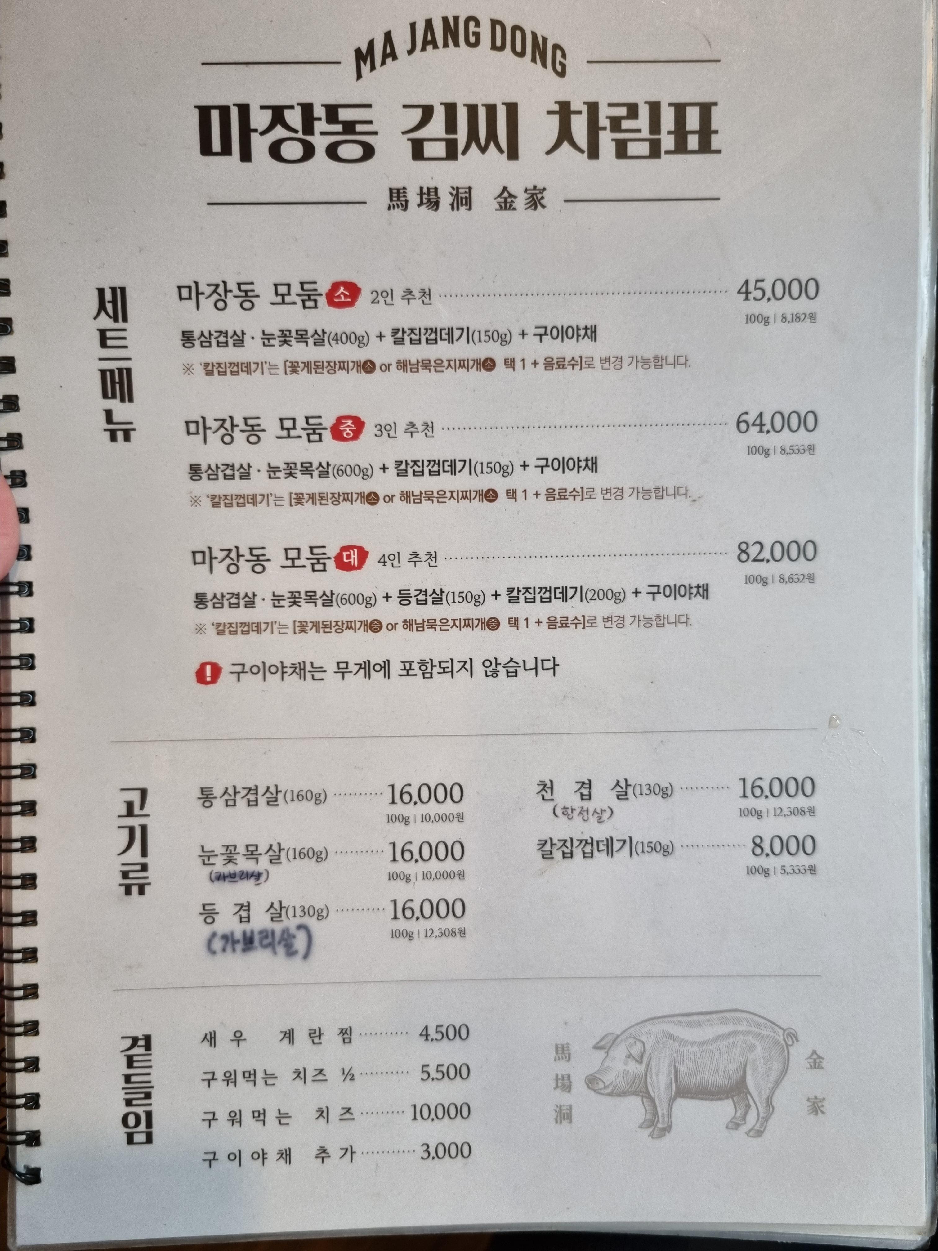 마장동 김씨 메뉴입니다.