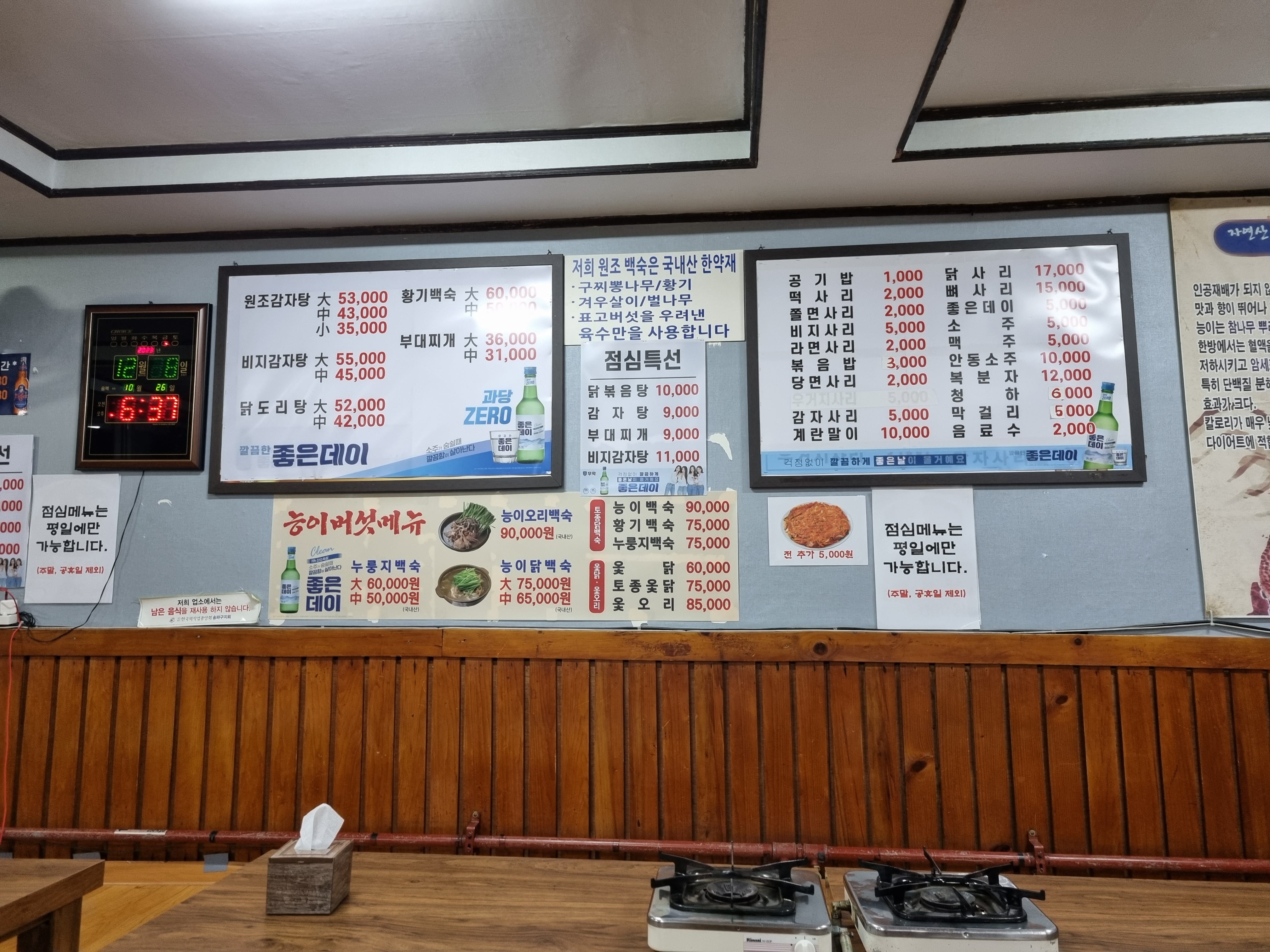능이오리백숙, 누릉지백숙, 능이닭백숙 등 감자탕 외에도 다양한 메뉴가 있습니다.