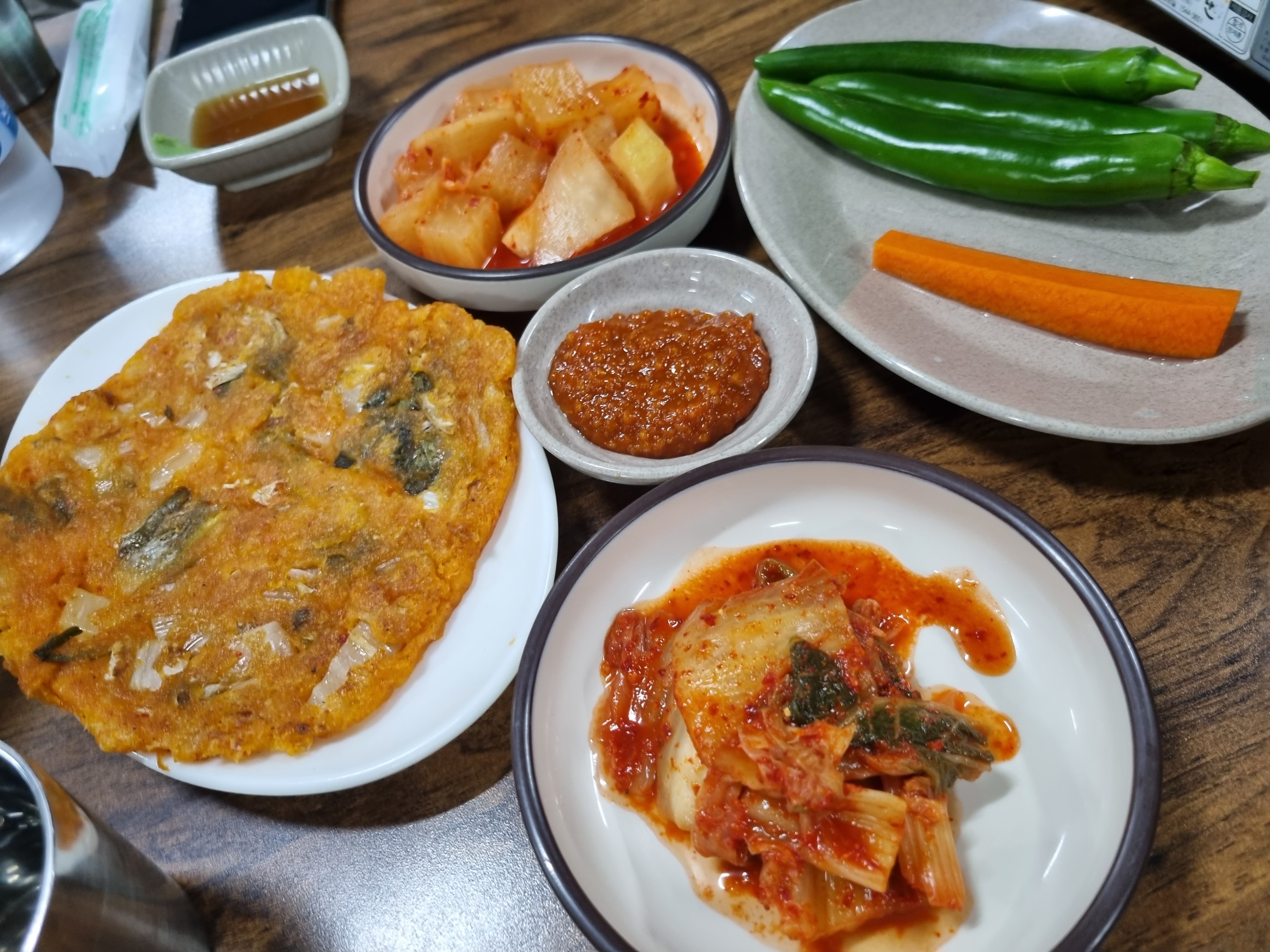 특이한 점은 김치전이 나옵니다.