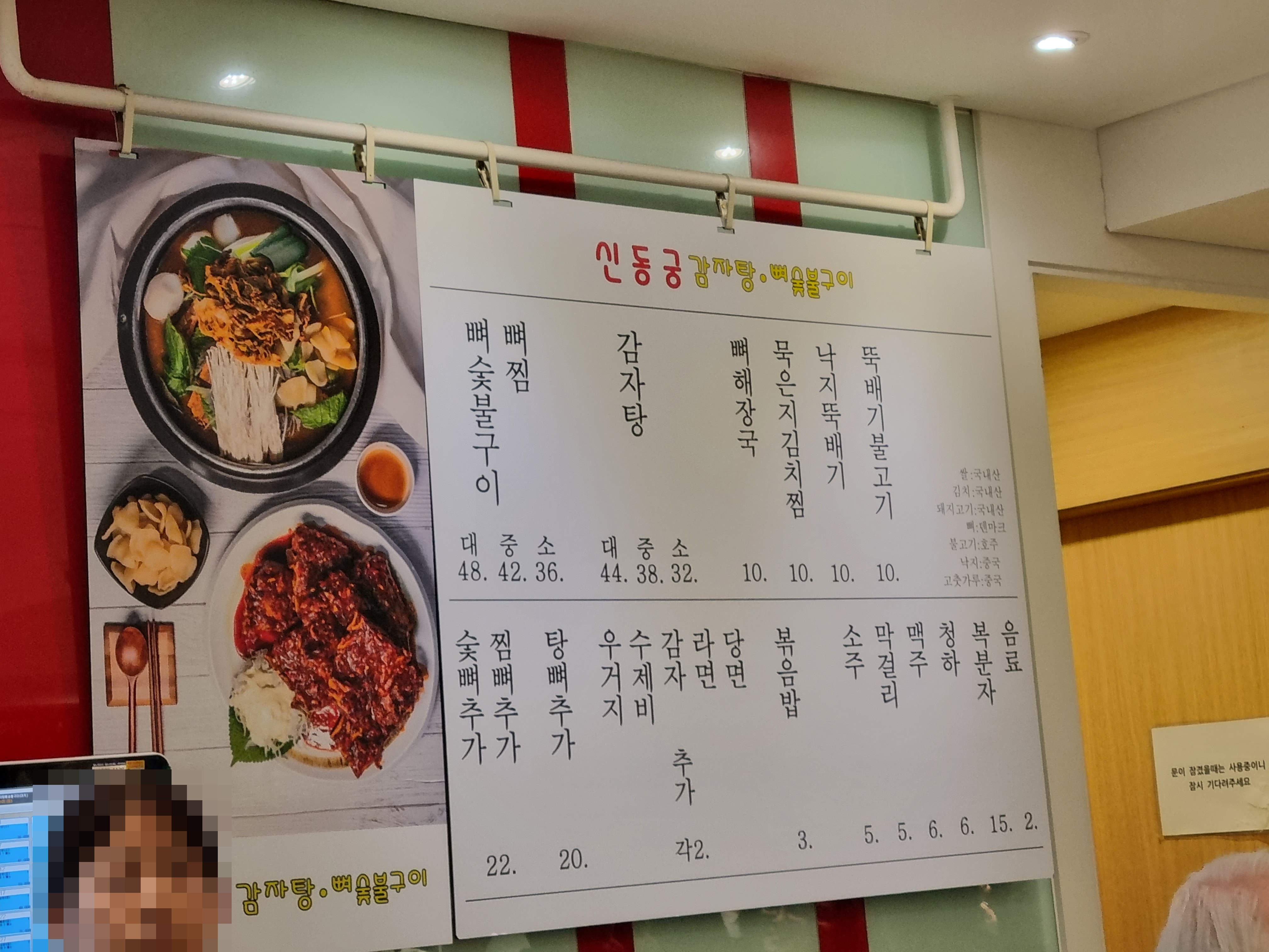 신동궁 감자탕 뼈숯불구이 메뉴입니다.