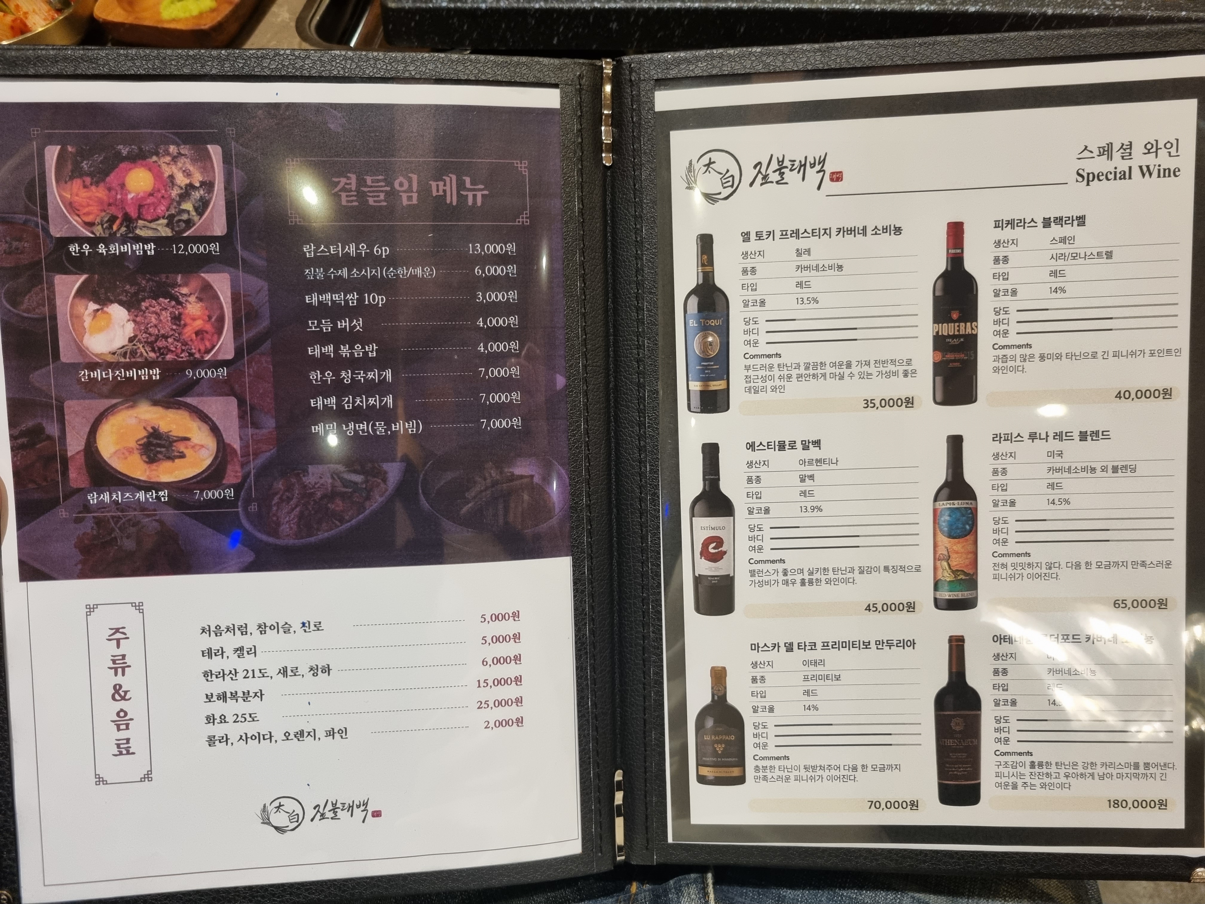 이곳 짚불태백도 키오스크를 통해 주문하는데 메뉴판에는 있는데 주문이 안되는 메뉴가 제법 있어서 조금 당황스러웠습니다.