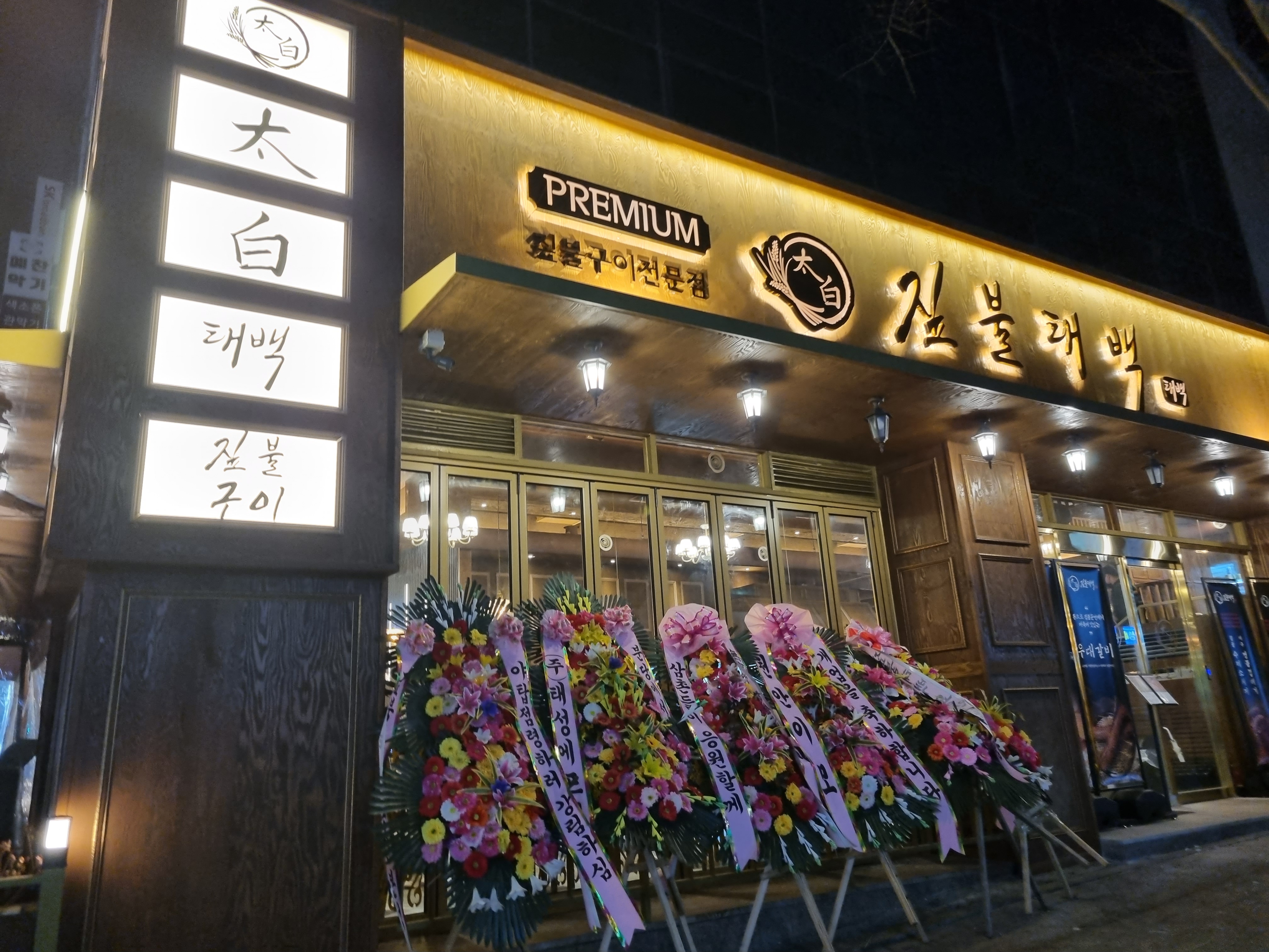 먹자골목에서 조금 벗어난 곳에 짚불태백이라는 고기집이 새로 생겼습니다.