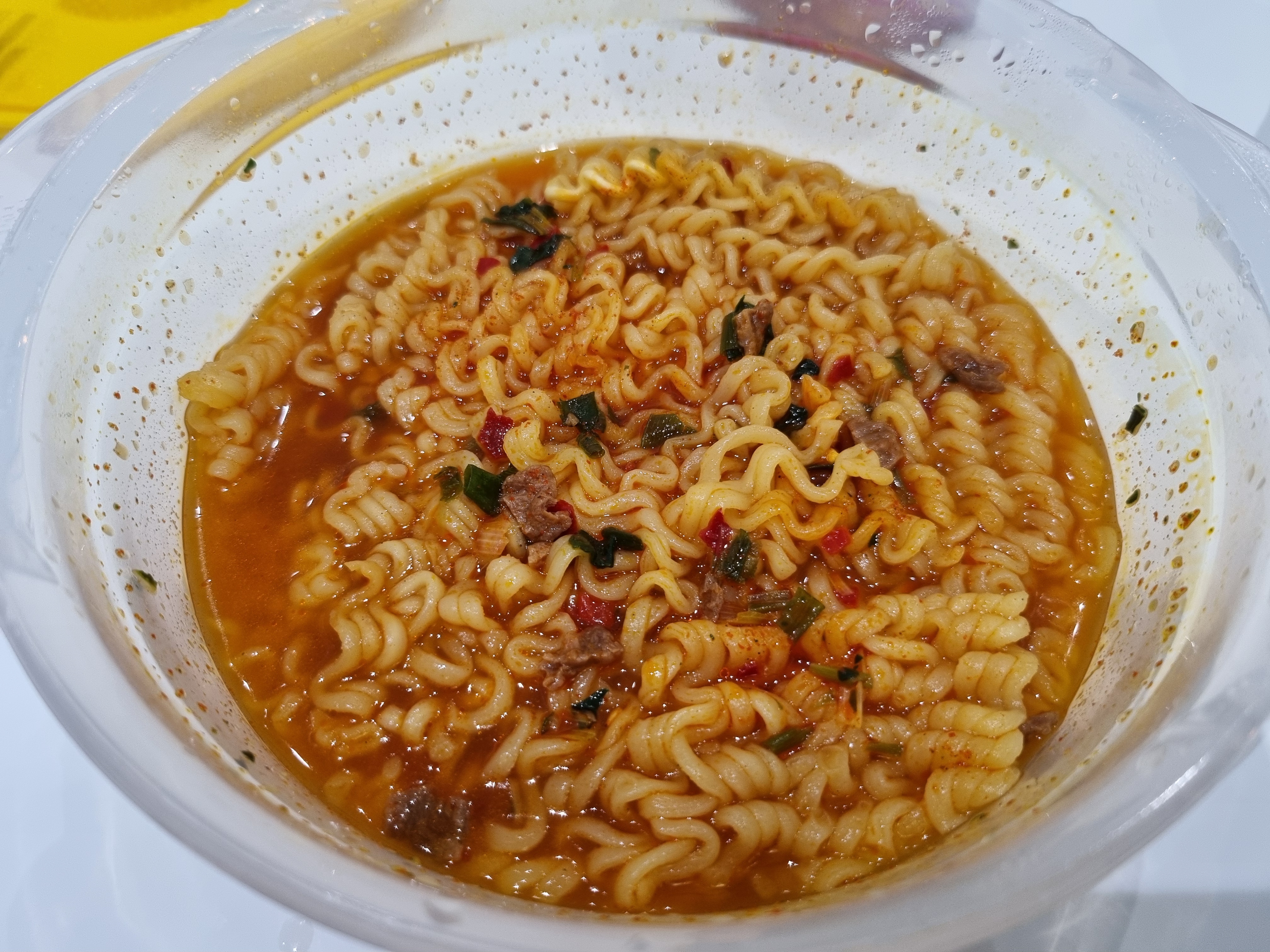 가스레인지로 끓여먹는 라면과는 조금 다르지만 컵라면보다는 맛있습니다.