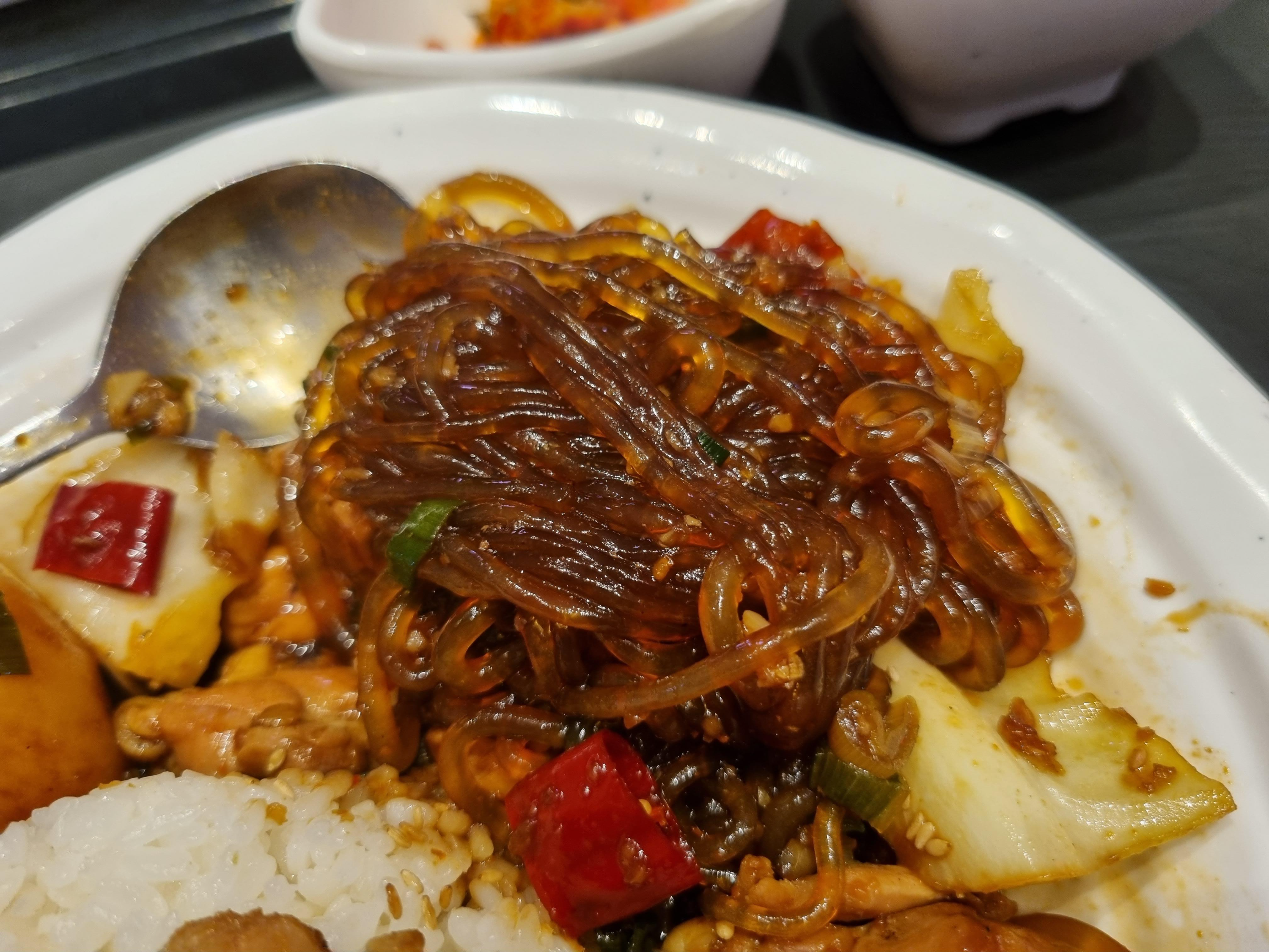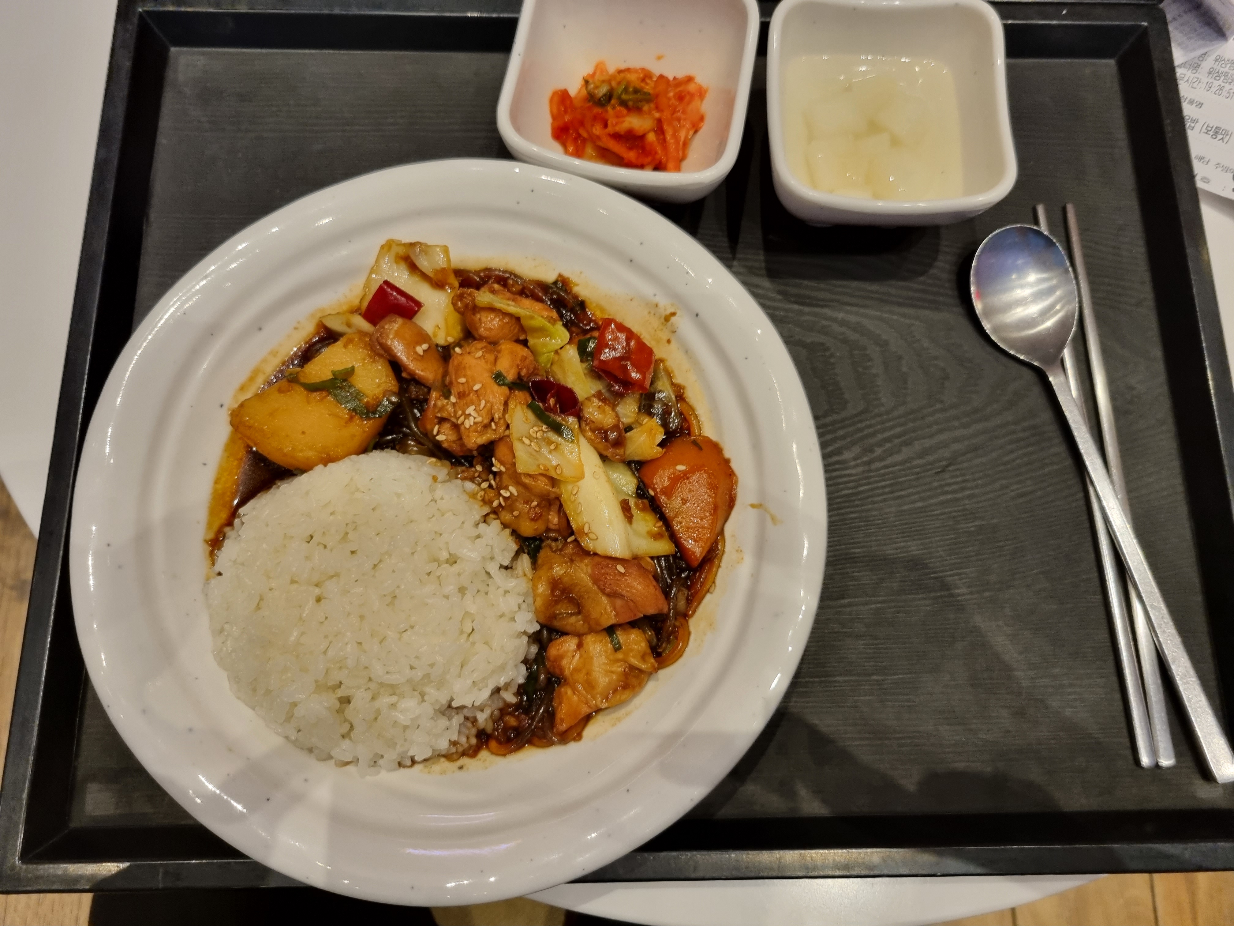 이곳에는 돈까스, 초밥, 한식 등 수 많은 음식이 있고 저는 찜닭을 먹기로 결정했습니다.
