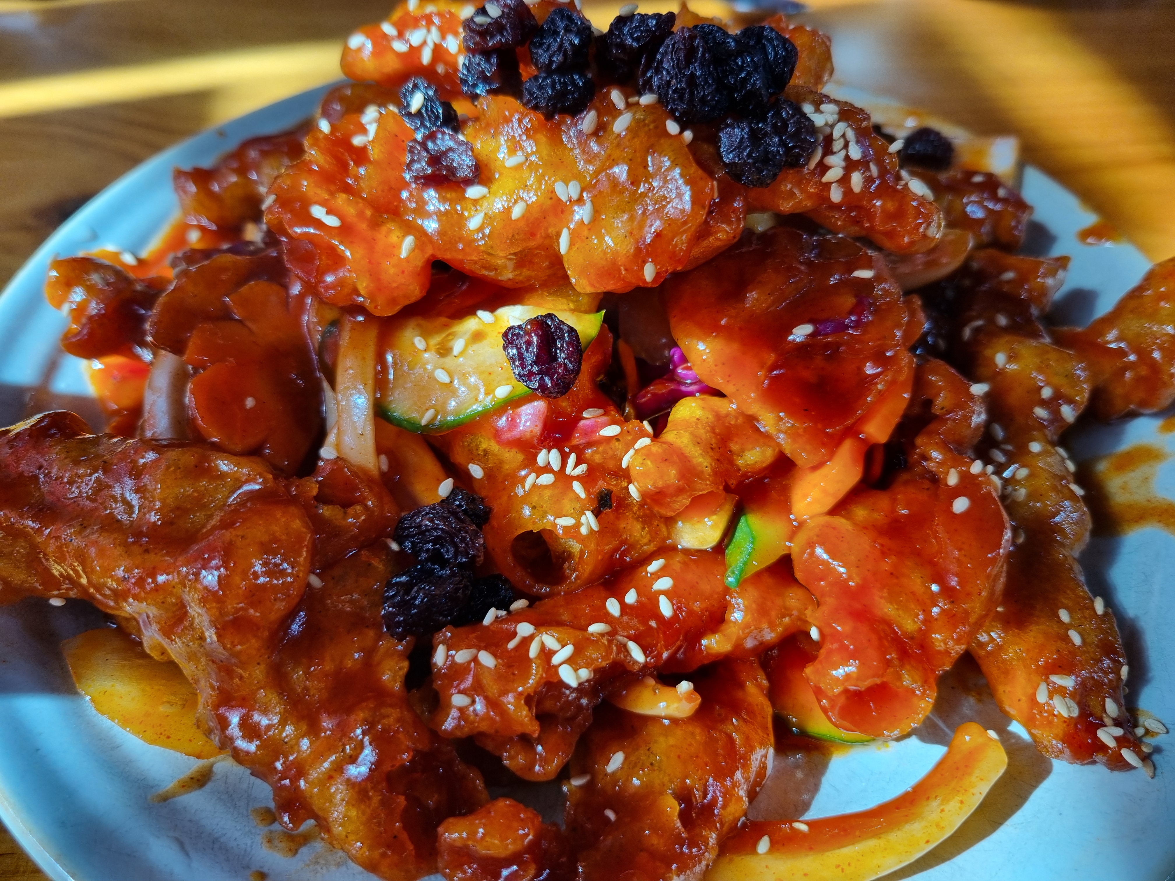 쟁반짜장 먹다가 조금 느끼하다 싶을때 칠리탕수육을 먹으면 느끼한 맛이 없어져서 또 다시 먹을 수 있습니다.
