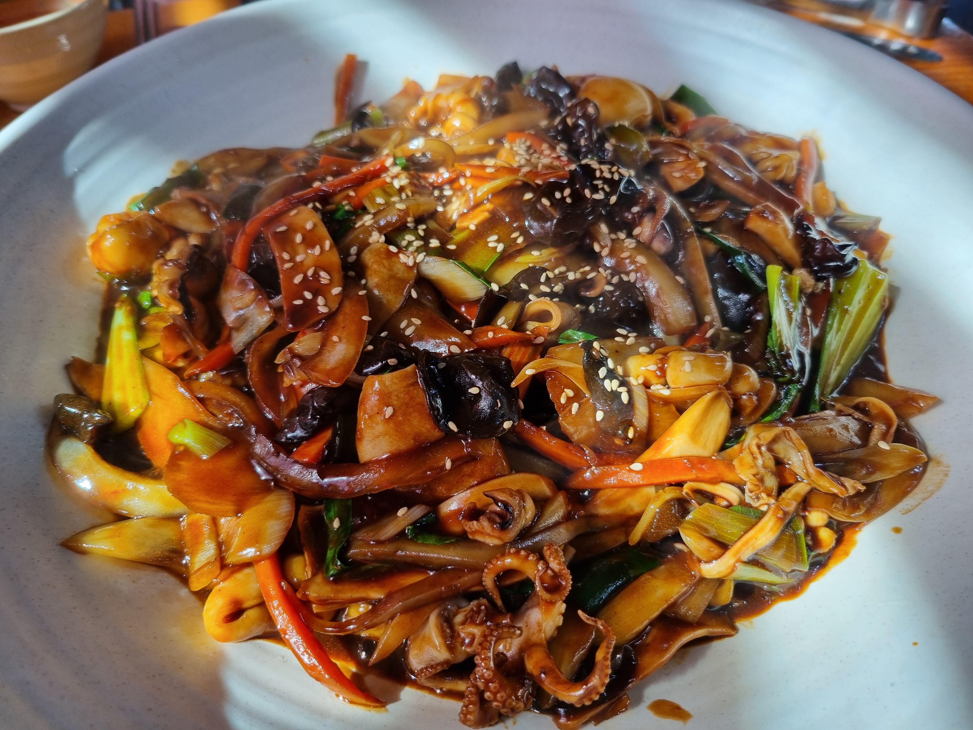 따로 비비지 않고 바로 먹을 수 있는게 장점인 쟁반 짜장인데 해산물이 한 가득 나옵니다.