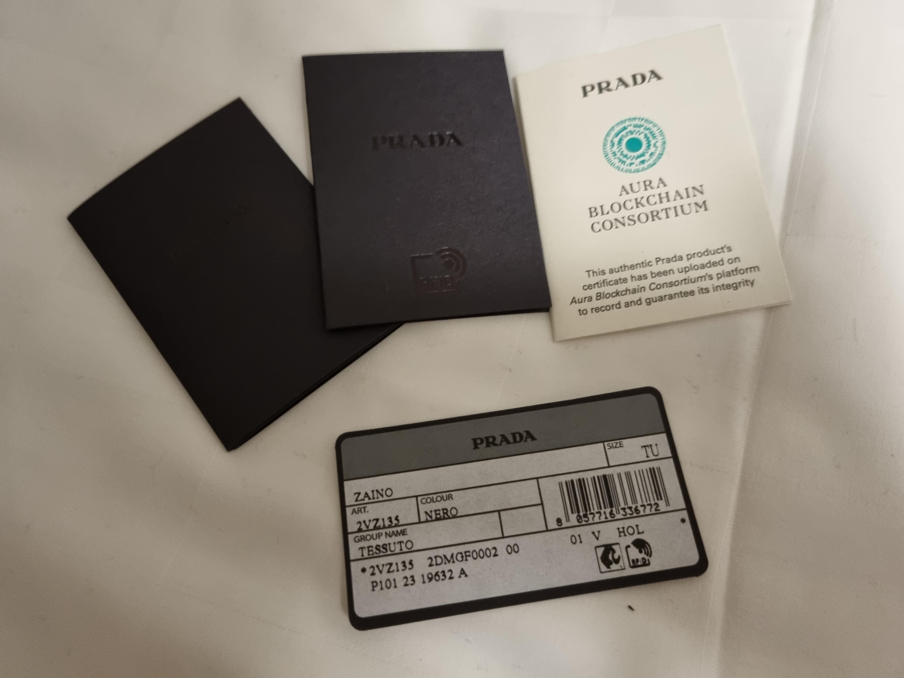 NFC 어플을 설치하신 후 실행한 뒤 가방 내부 PRADA 사각탭쪽에 핸드폰을 가져가면 인식되는 것을 확인하실 수 있습니다.