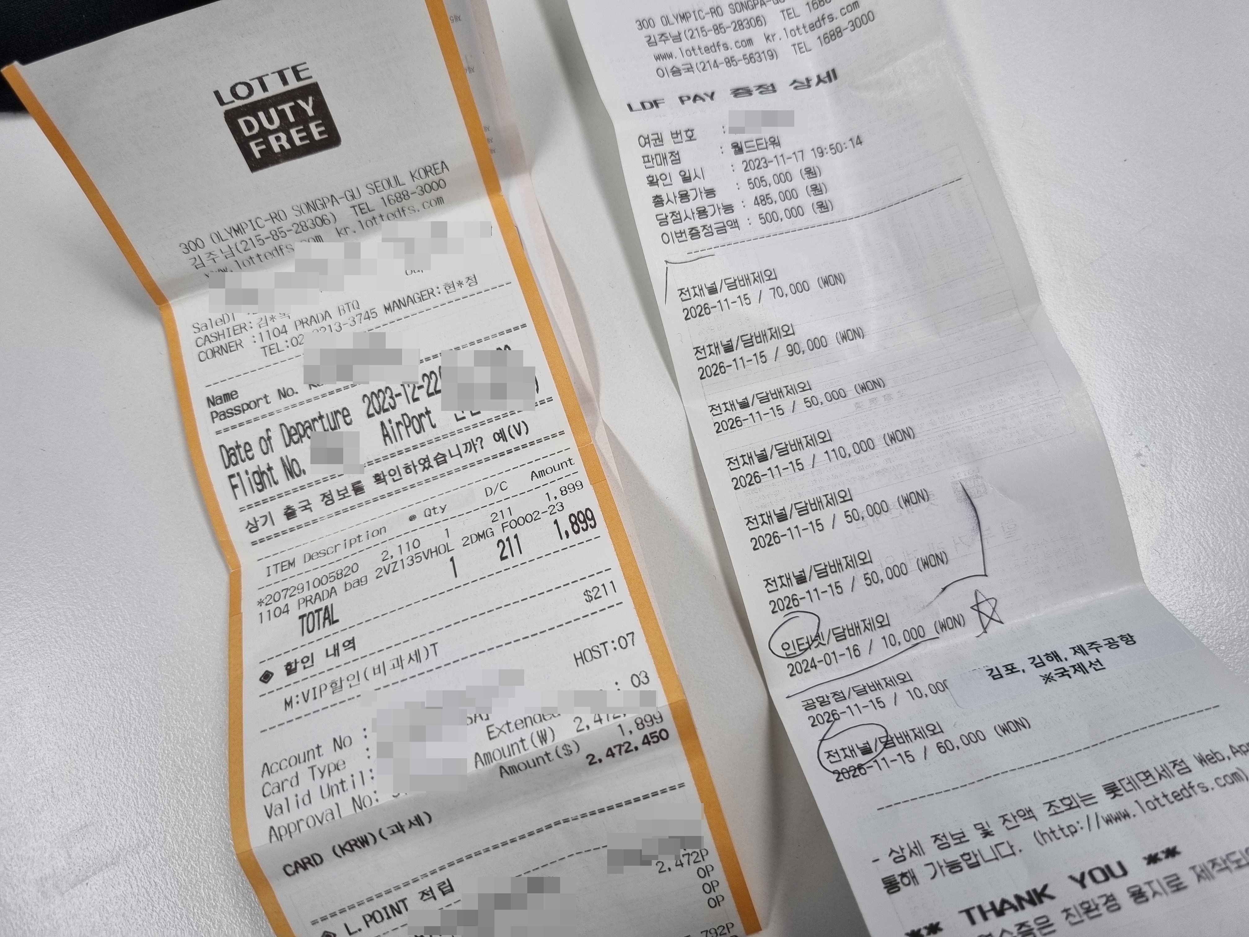 또한, 구매 금액별로 롯데인터넷면세점에서 쓸 수 있는 LDF PAY 를 지급해 주는 이벤트가 진행중이었고 저의 경우 50만 LDF PAY 를 지급 받았습니다.