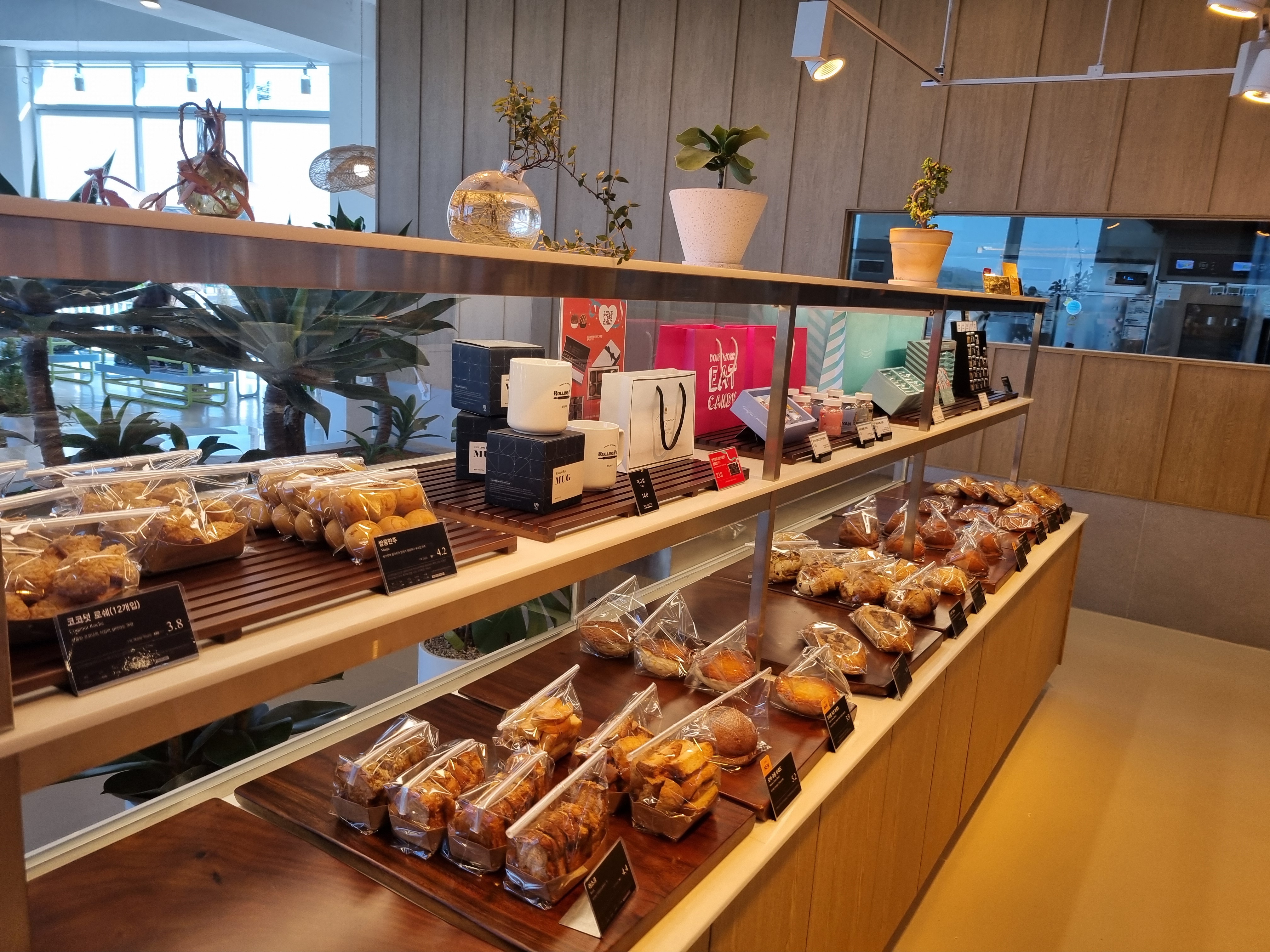 베이커리 카페답게 다양한 종류의 빵이 준비되어 있고 바로 옆에서는 빵을 만드는 곳을 눈으로 볼 수 있습니다.