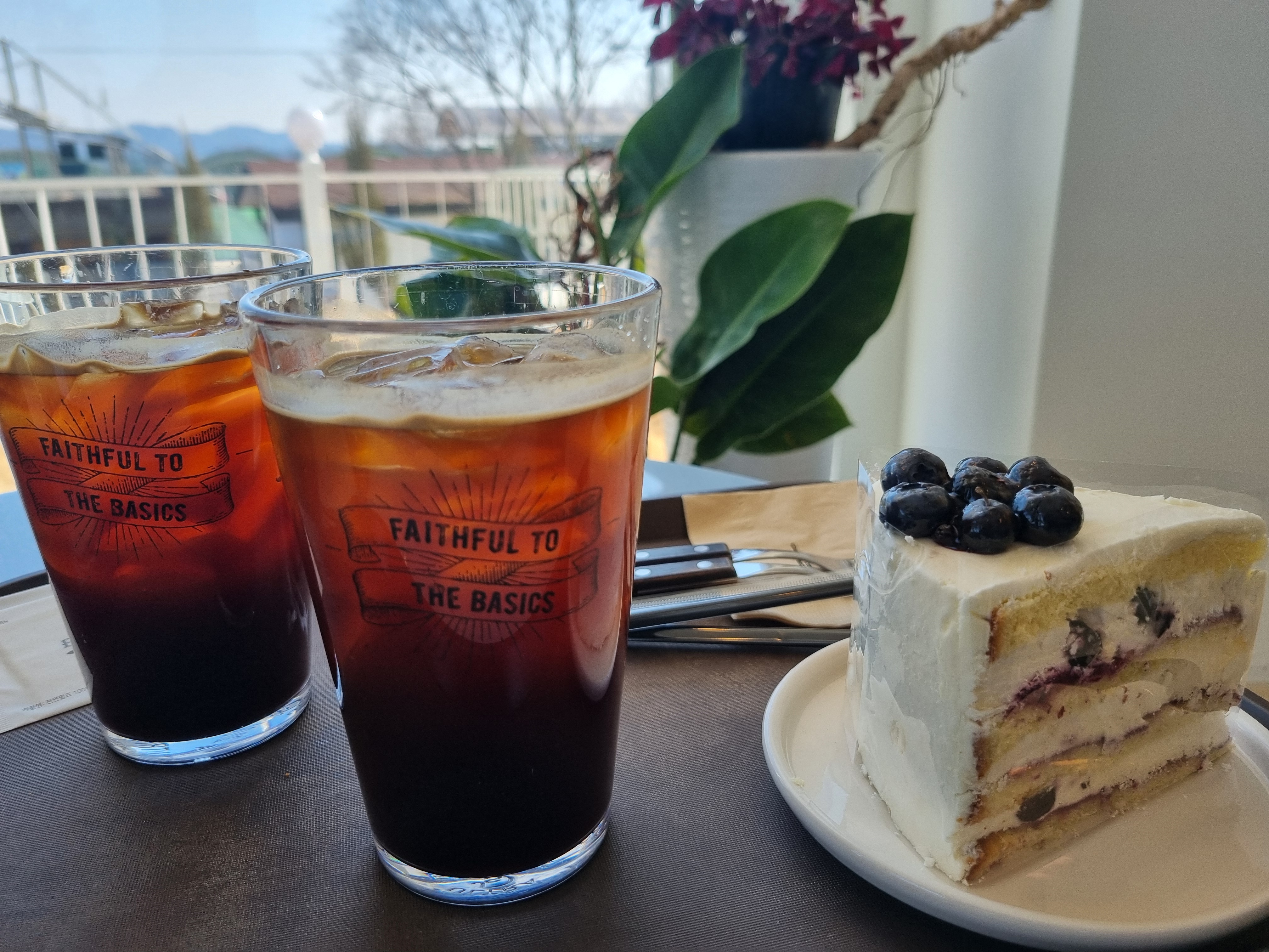 밥도 먹고 왔으니 베이커리보다는 케이크를 주문해서 디저트로 한 입 했습니다.