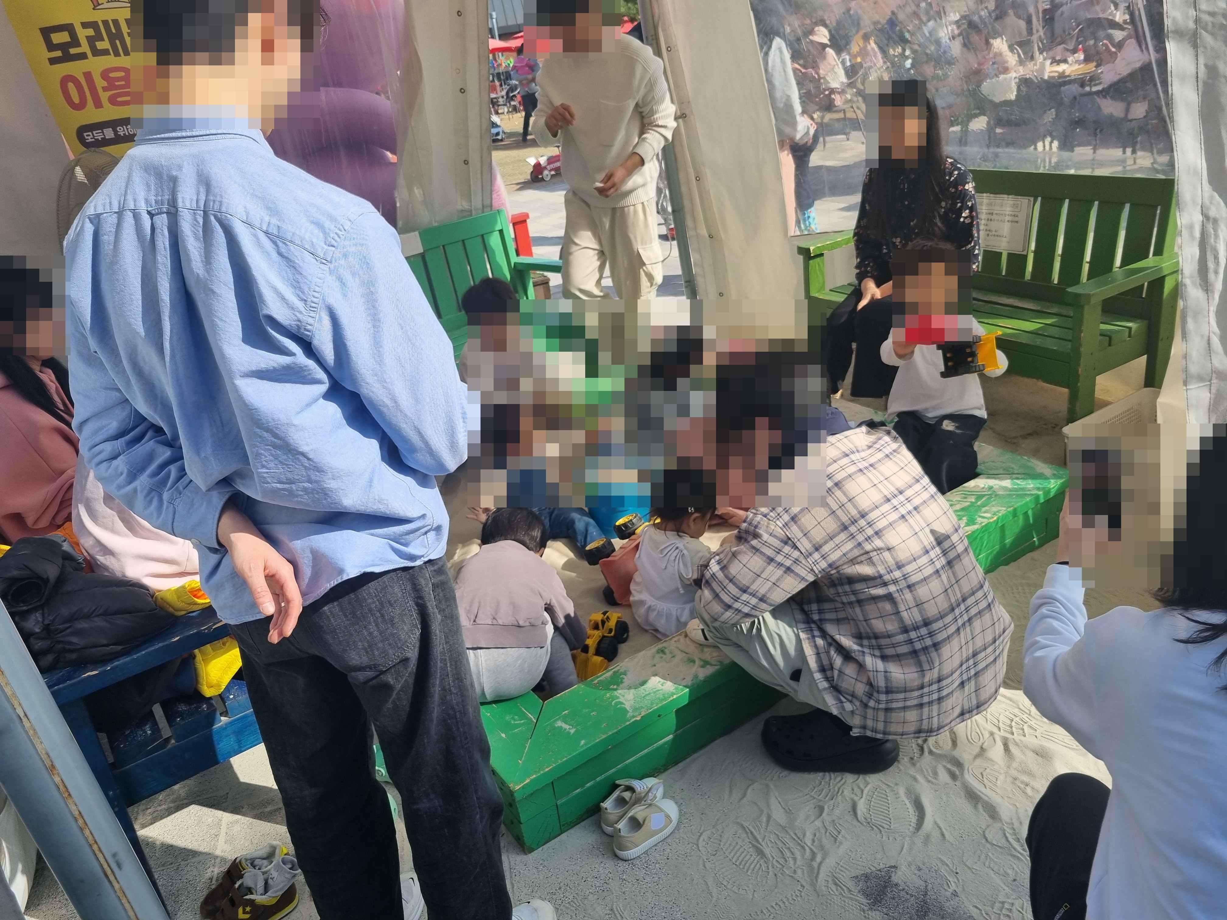 아이들을 위한 놀이 기구가 이곳 저곳 배치되어 있는데 어릴때 퐁퐁이라 불리우던 트램폴린부터 모래를 가지고 놀 수 있는 놀이터 등 노키즈존이 늘어나는 요즘.. 아이와 함께 오게끔 만들어놓은 시설이 참 인상 깊었습니다.