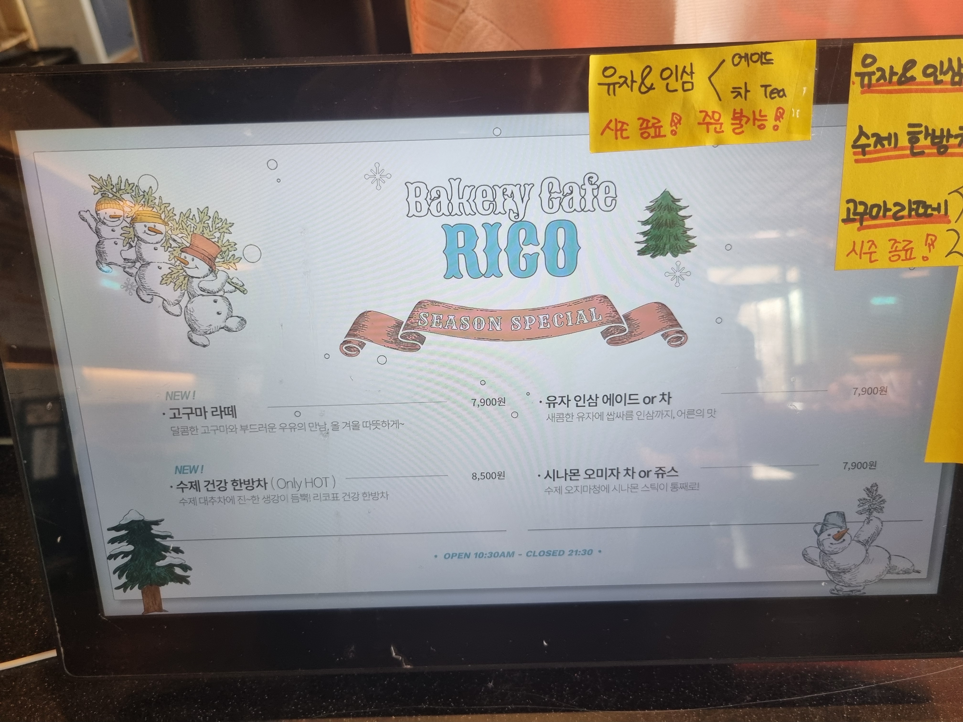 시즌 종료로 주문이 불가능한 메뉴는 메뉴에서 빼면 되지 않나 라는 생각이 들 정도로 포스트잇을 많이 붙여놨네요.