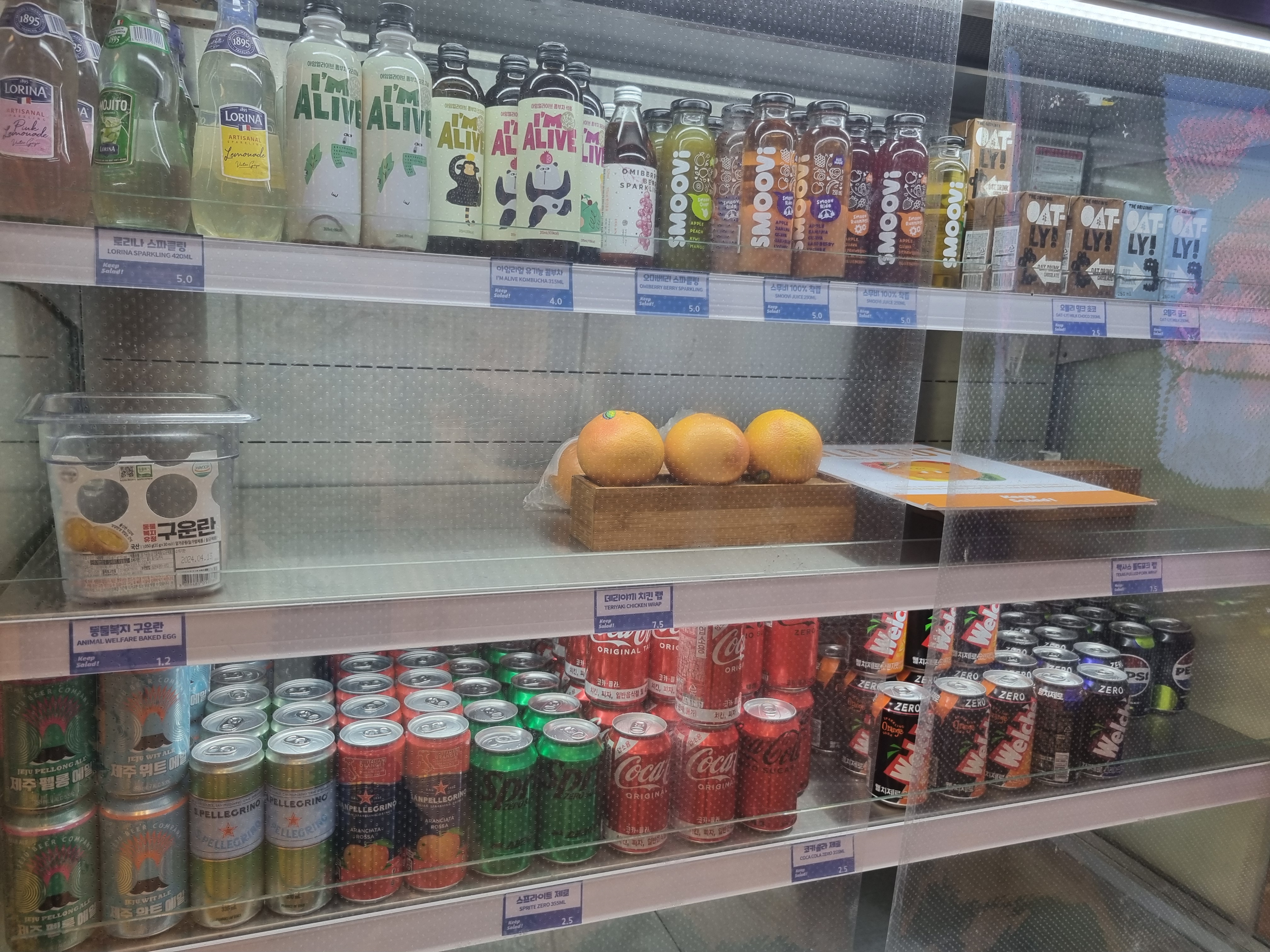 탄산음료, 우유, 콤부차 등 다양한 음료와 맥주도 판매하고 있습니다.