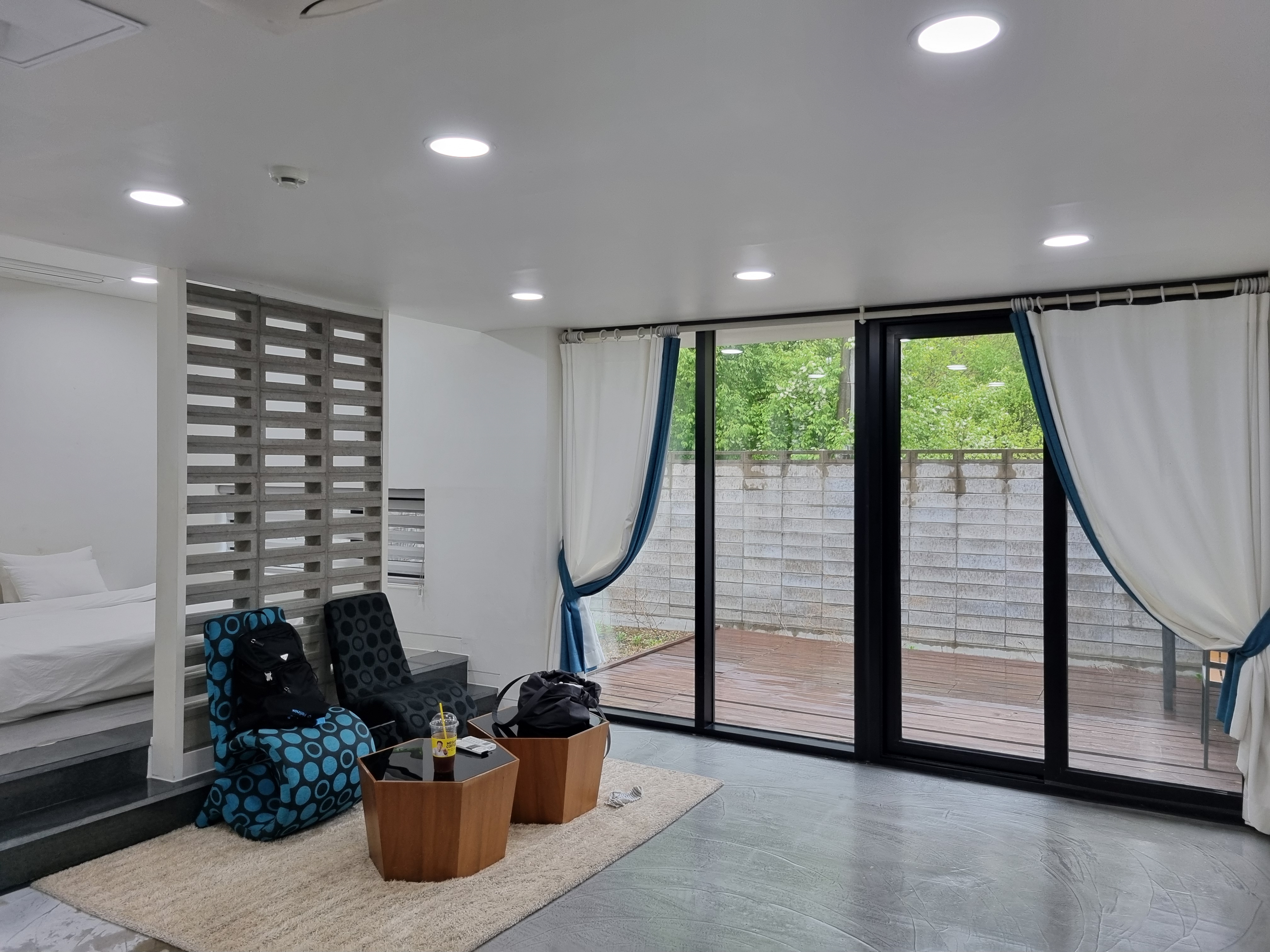 바베큐장을 뒤로하고 방쪽으로 걸음을 옮기면 매우 깔끔한 숙소 내부가 눈에 들어옵니다.