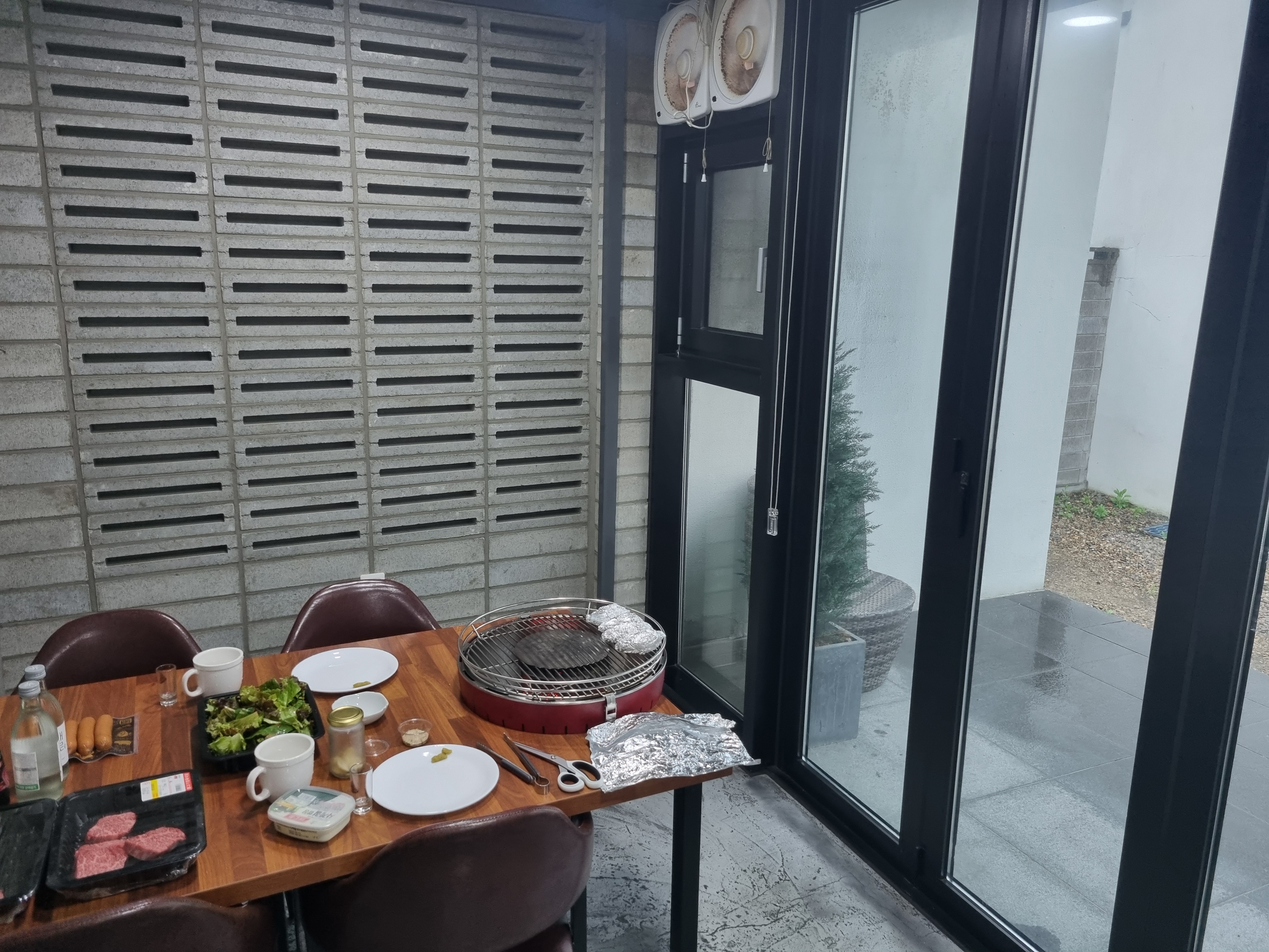문을 열고 들어가면 제일 먼저 눈에 들어오는 곳이 프라이빗하게 바베큐를 먹을 수 있는 공간이 있습니다.