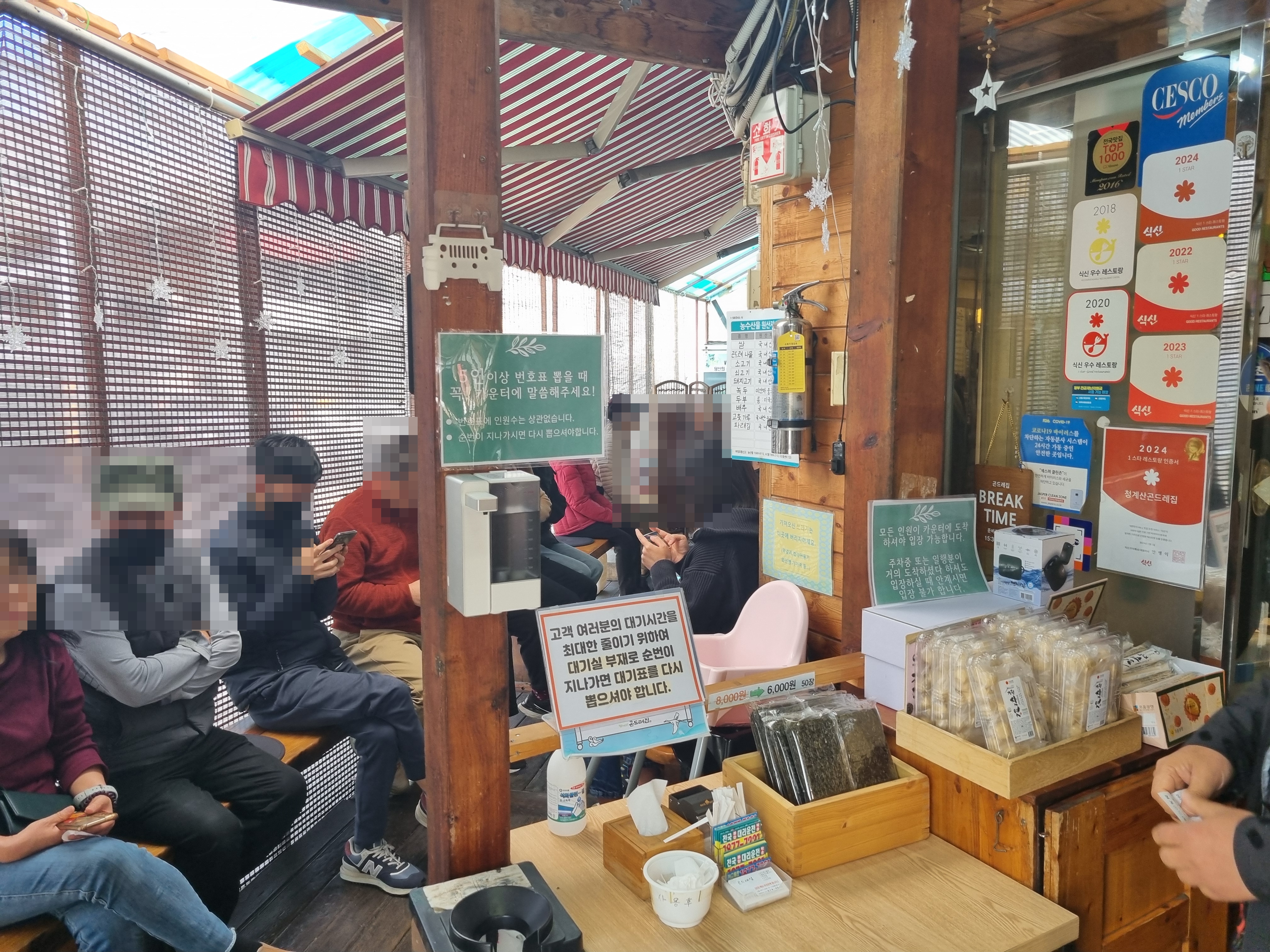 가게 내부에는 앉아서 기다릴 수 있는 공간이 있지만 매우 좁은 편이고 건너편 정자 앞에 앉아서 기다리면 됩니다.