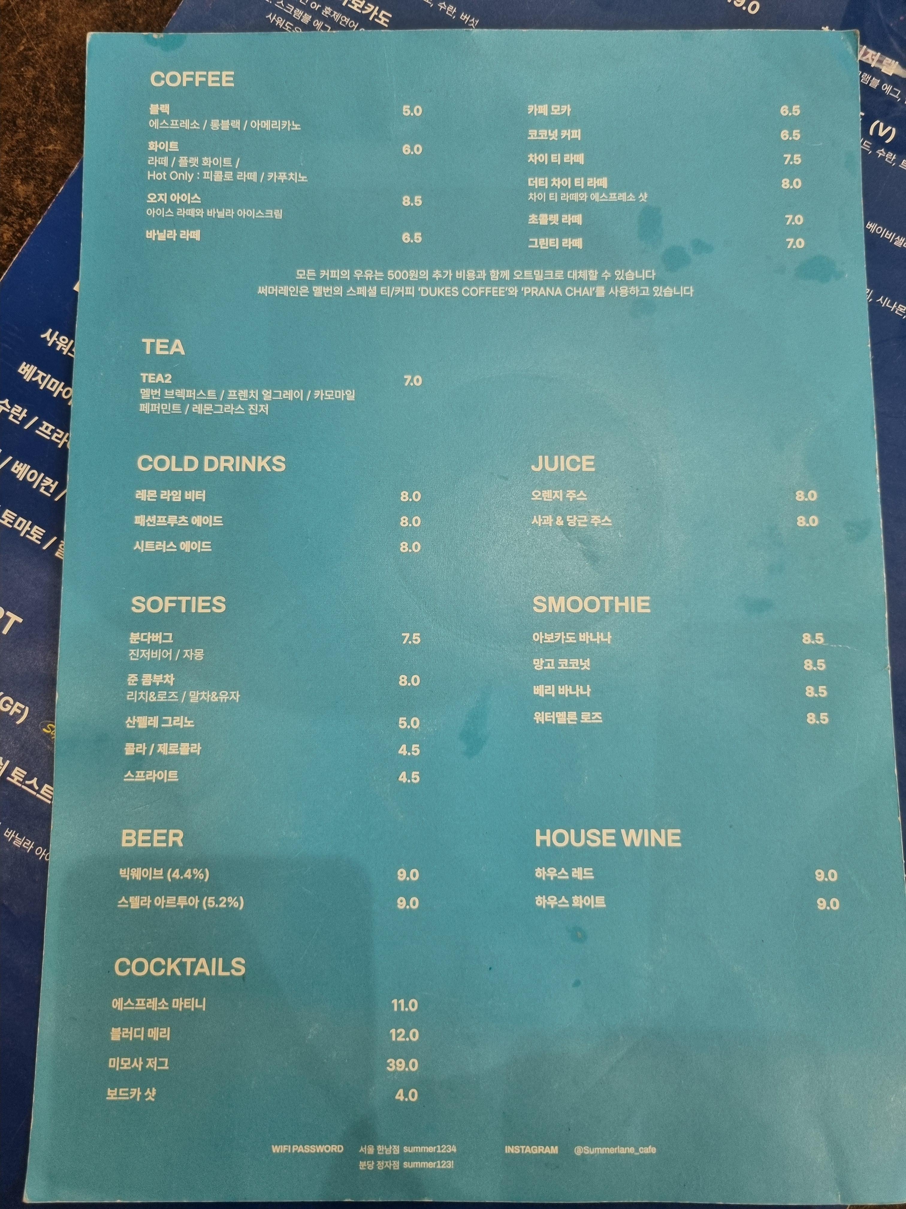 제가 다녀온지 얼마 안됐는데 그 사이에 폐업을 하다니... 무슨 사유로 문을 닫았는진 모르겠지만 썸머레인을 방문하려면 이태원 본점을 가야하는 점 참고해 주시기 바랍니다.
