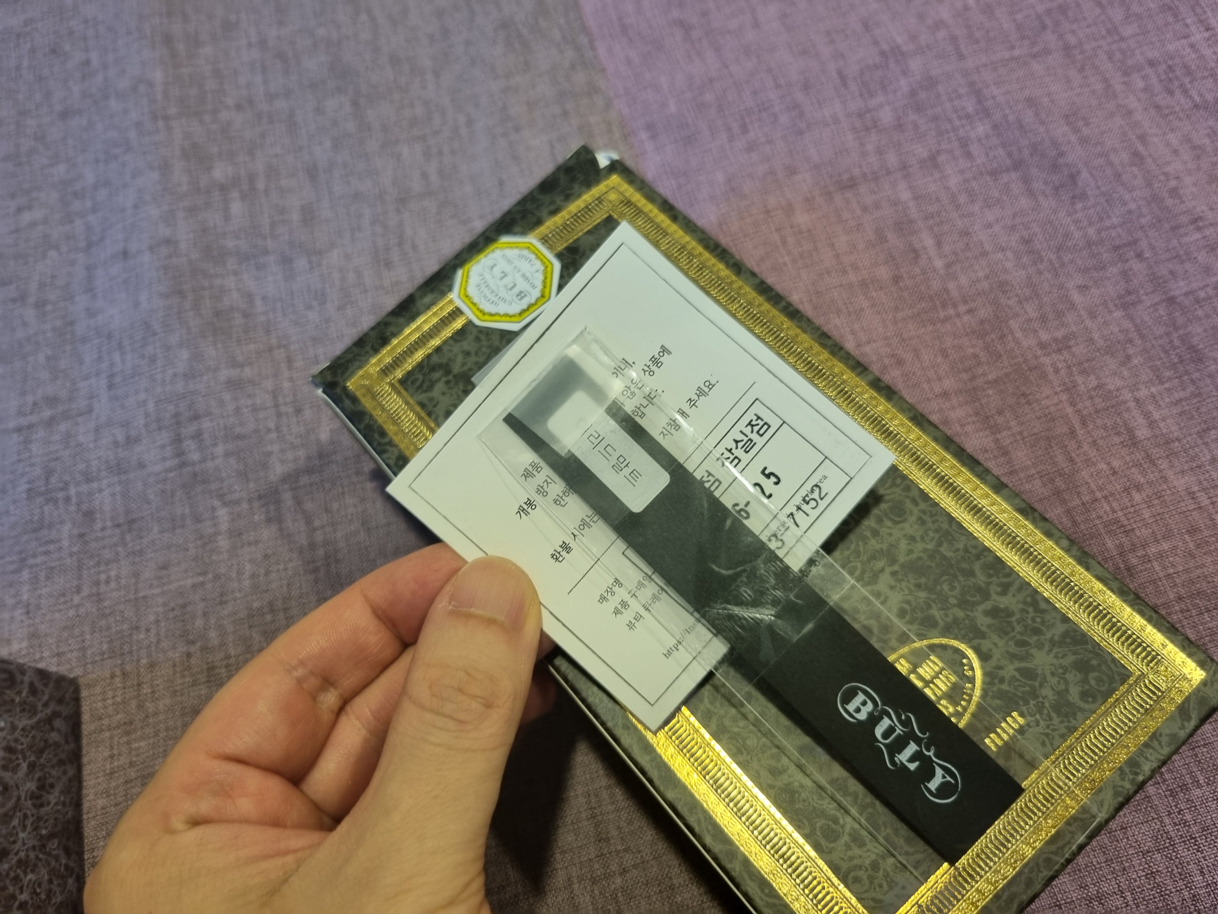 선물 받은 사람 입장에서 향이 좋은 지 아닌 지를 확인할 수 있는 시향지도 같이 포장을 해주는 디테일도 있습니다.