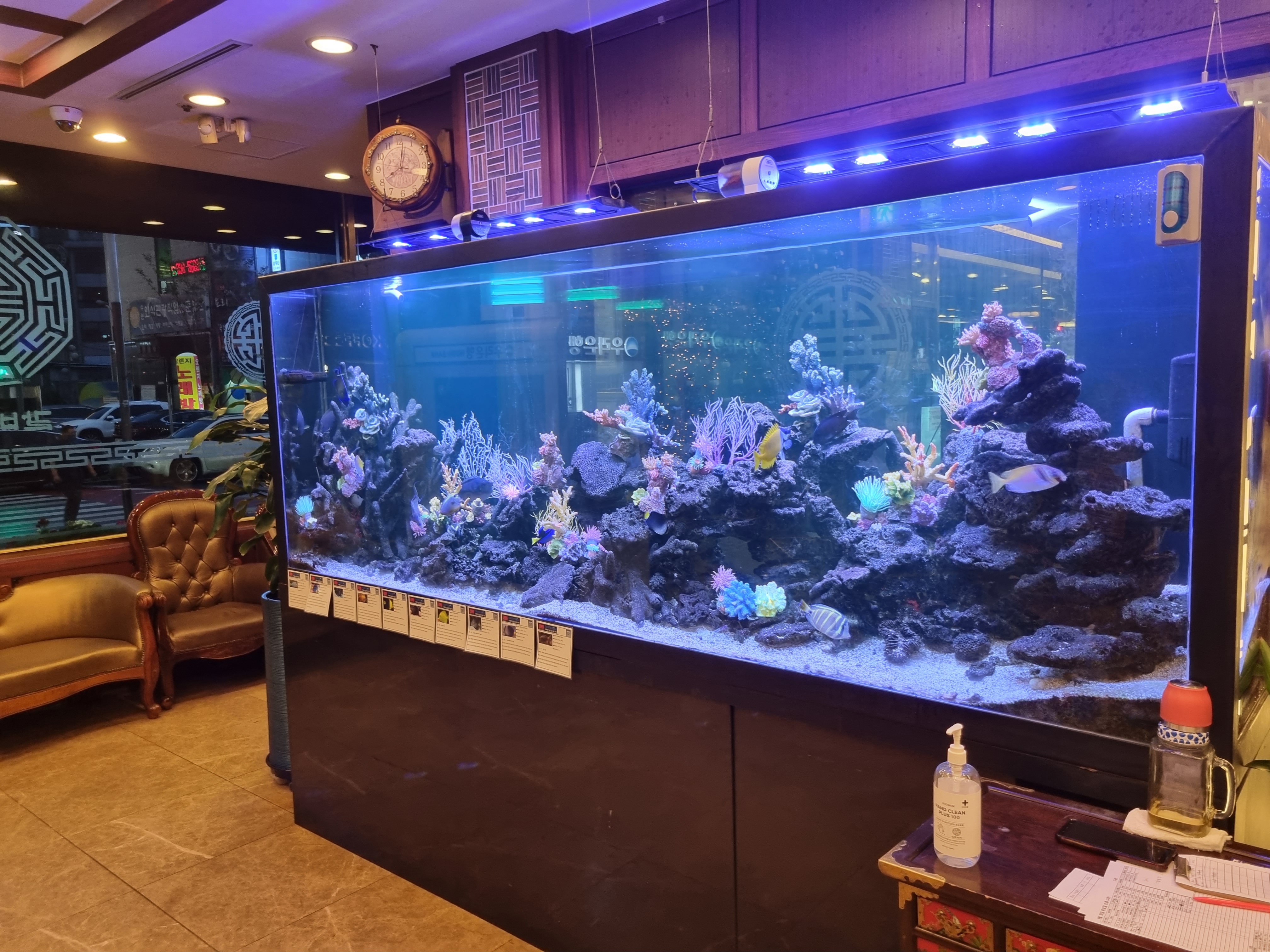 2관의 경우 이렇게 매장안으로 들어서면 큰 어항과 아이언맨을 만날 수 있습니다.