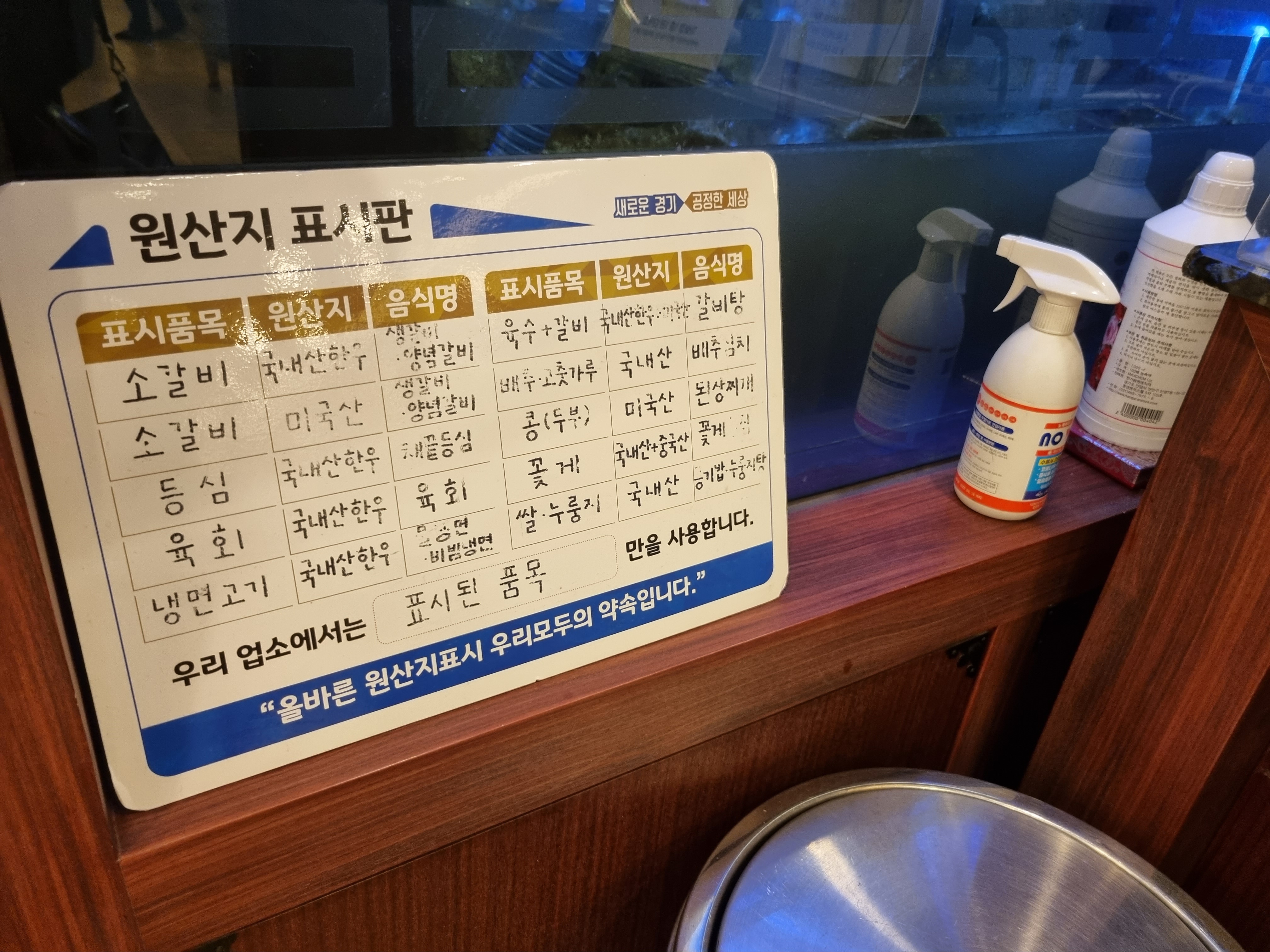 계산대 옆에는 이렇게 원산지 표시판도 있습니다.
