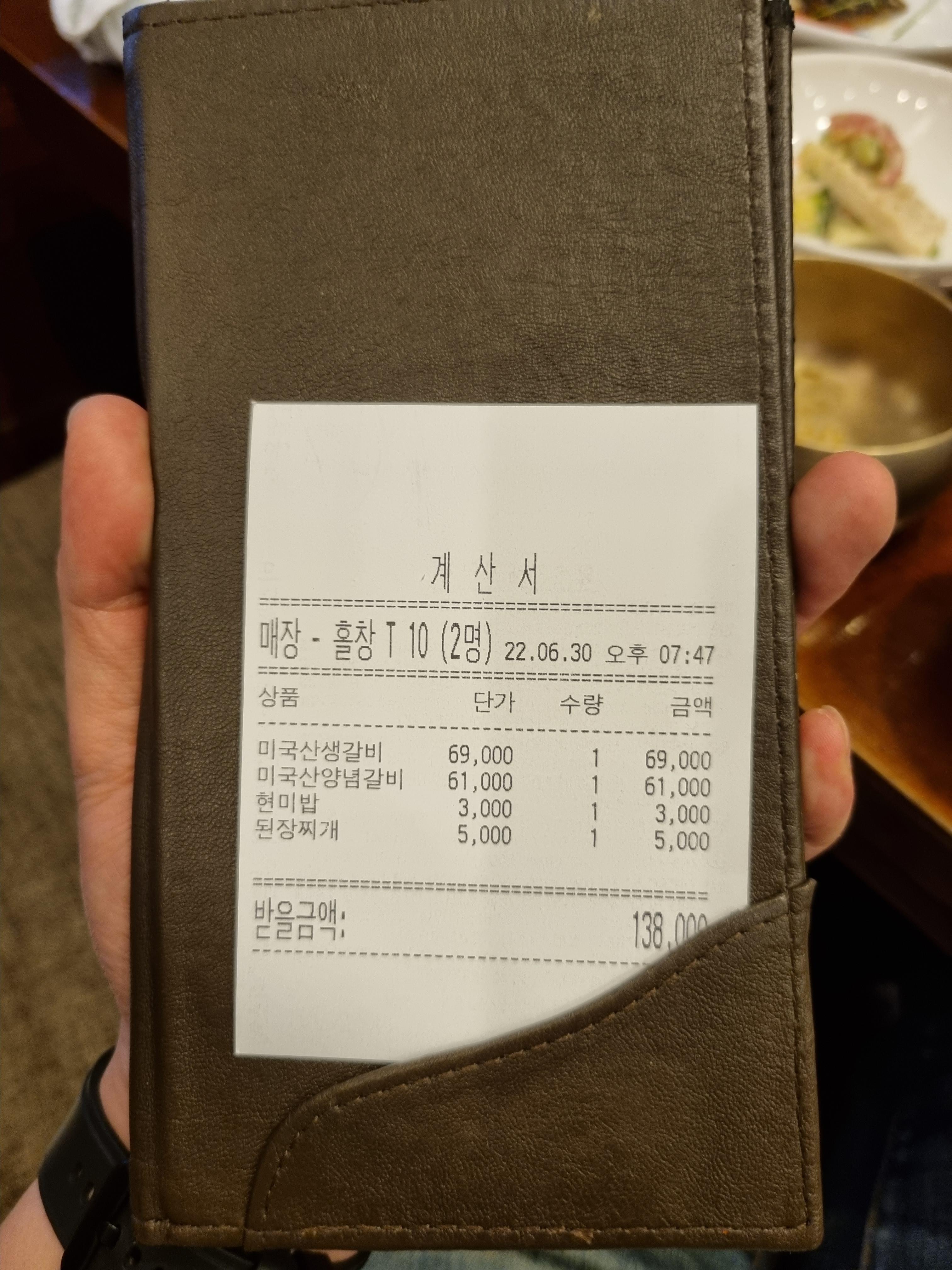 밥 하나와 된장찌개를 먹고 약 14만원 가까이 나왔네요.