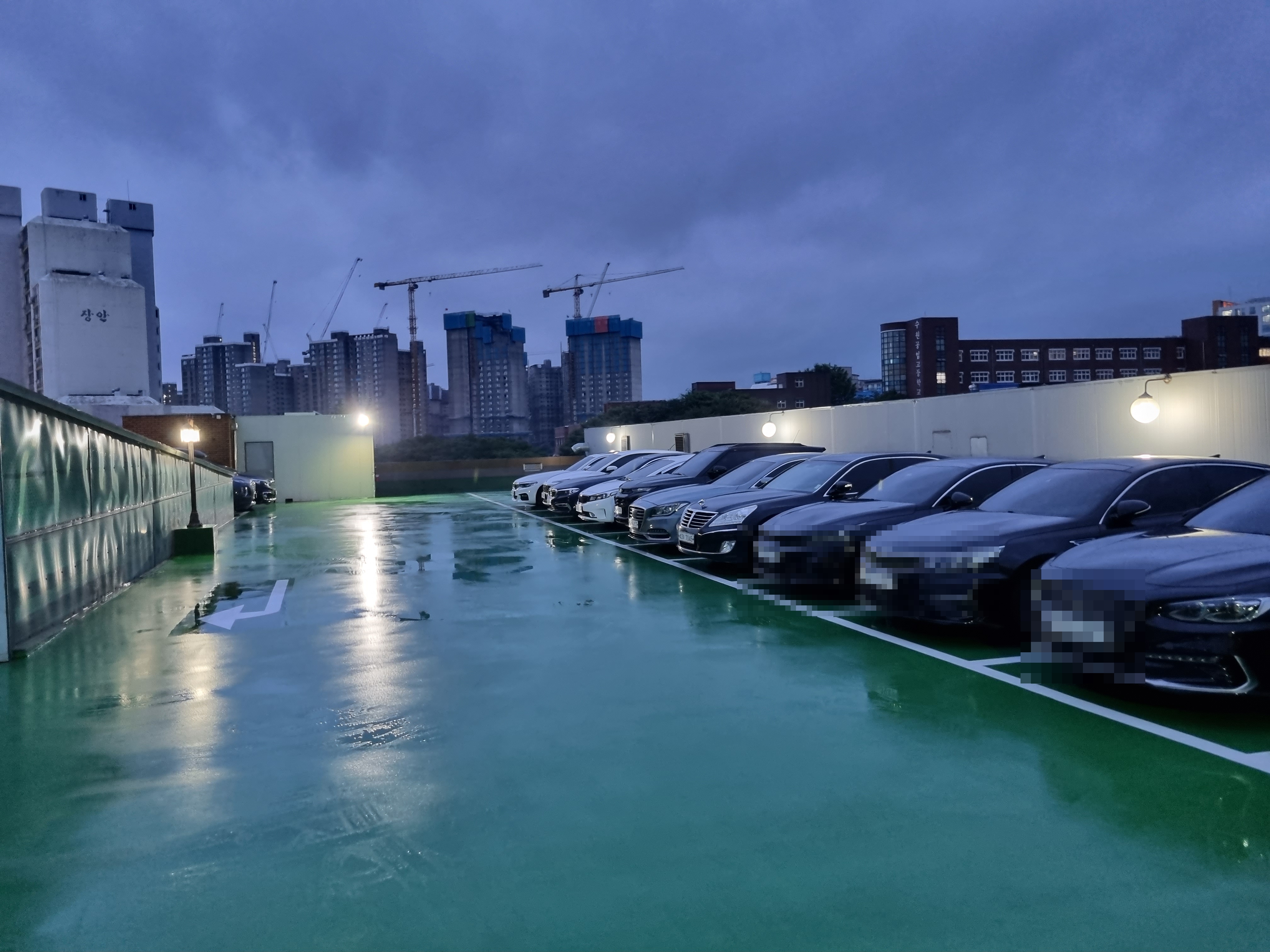 3층까지는 괜찮았던 것 같은데 4층부터 옥상인 6층의 경우 주차장 진입로가 좁아서 코너를 돌때 후진을 살짝해서 각을 만들고 다시 진입해야 합니다.