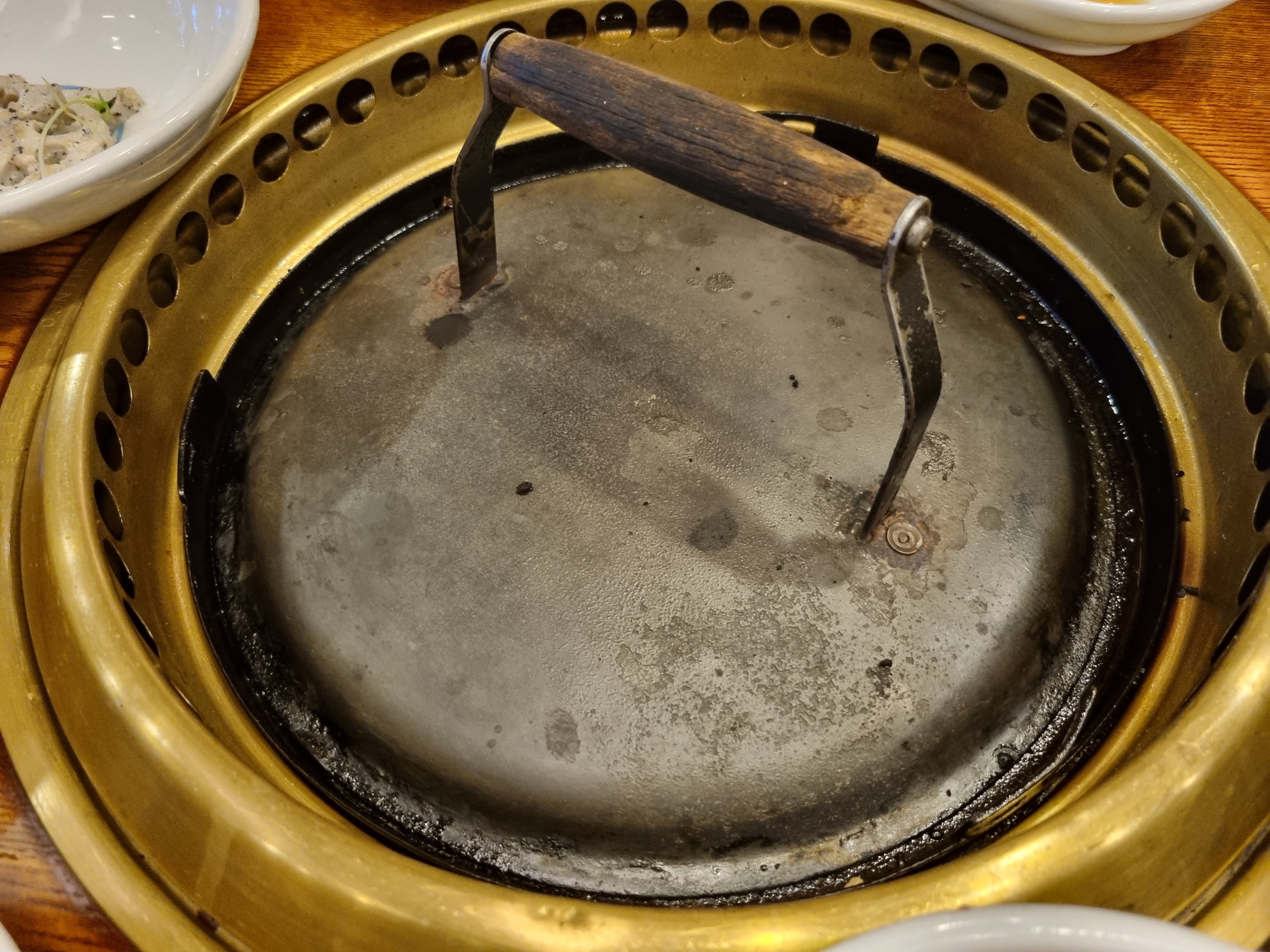 저렇게 솥뚜껑을 덮어놓고 있다가 고기를 굽기전에 뚜껑을 열어 숯불을 꺼냅니다.