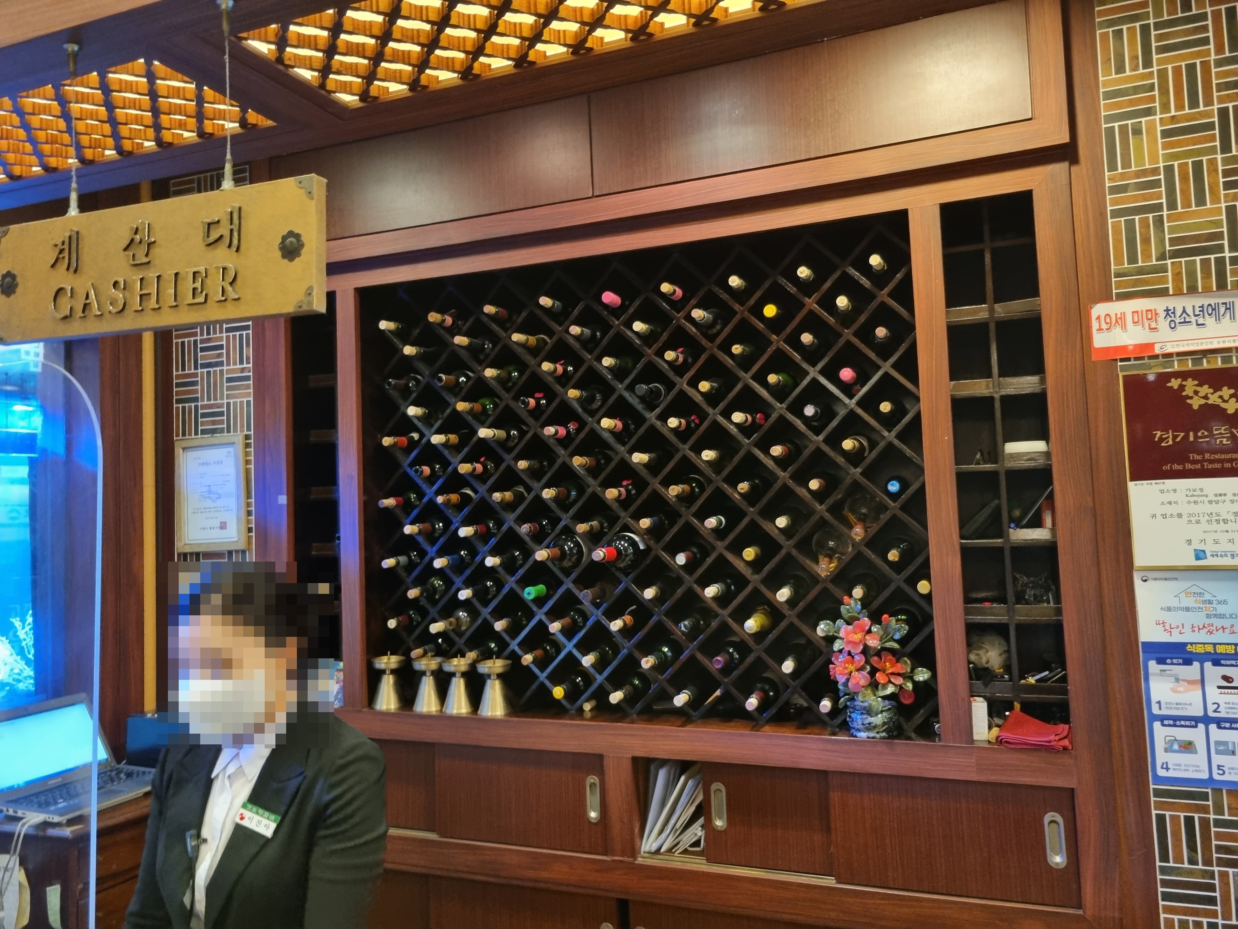 계산대 뒤에도 수 많은 와인들이 꽂혀있습니다.