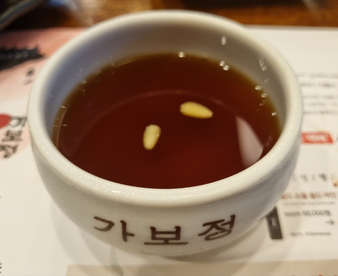 음식을 다 먹고나면 이렇게 약과와 수정과가 후식으로 나옵니다.