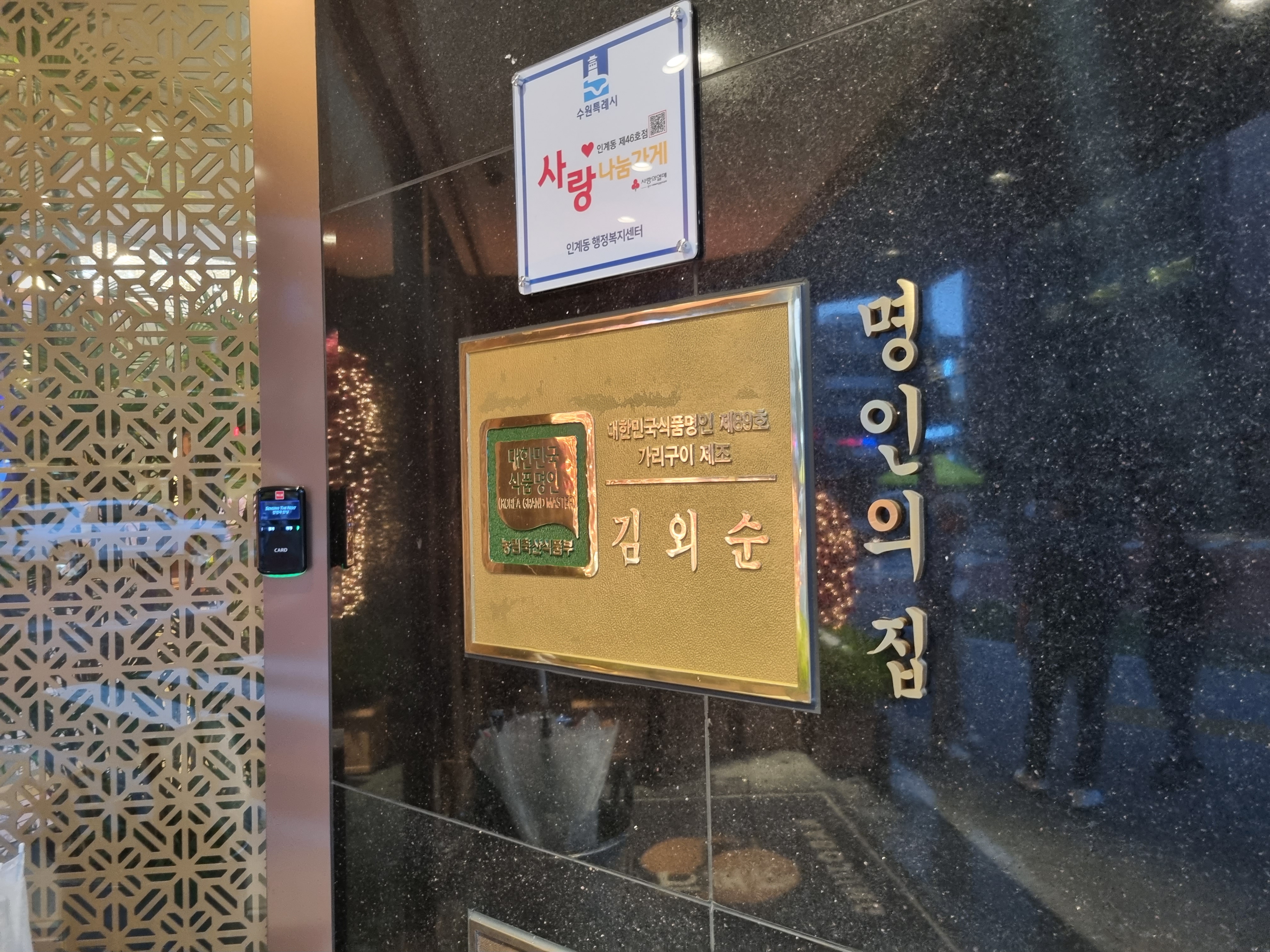 가리구이 제조 ?? 무엇인진 모르겠지만 김외순 명장님의 가게임을 알리는 명판인것 같습니다.