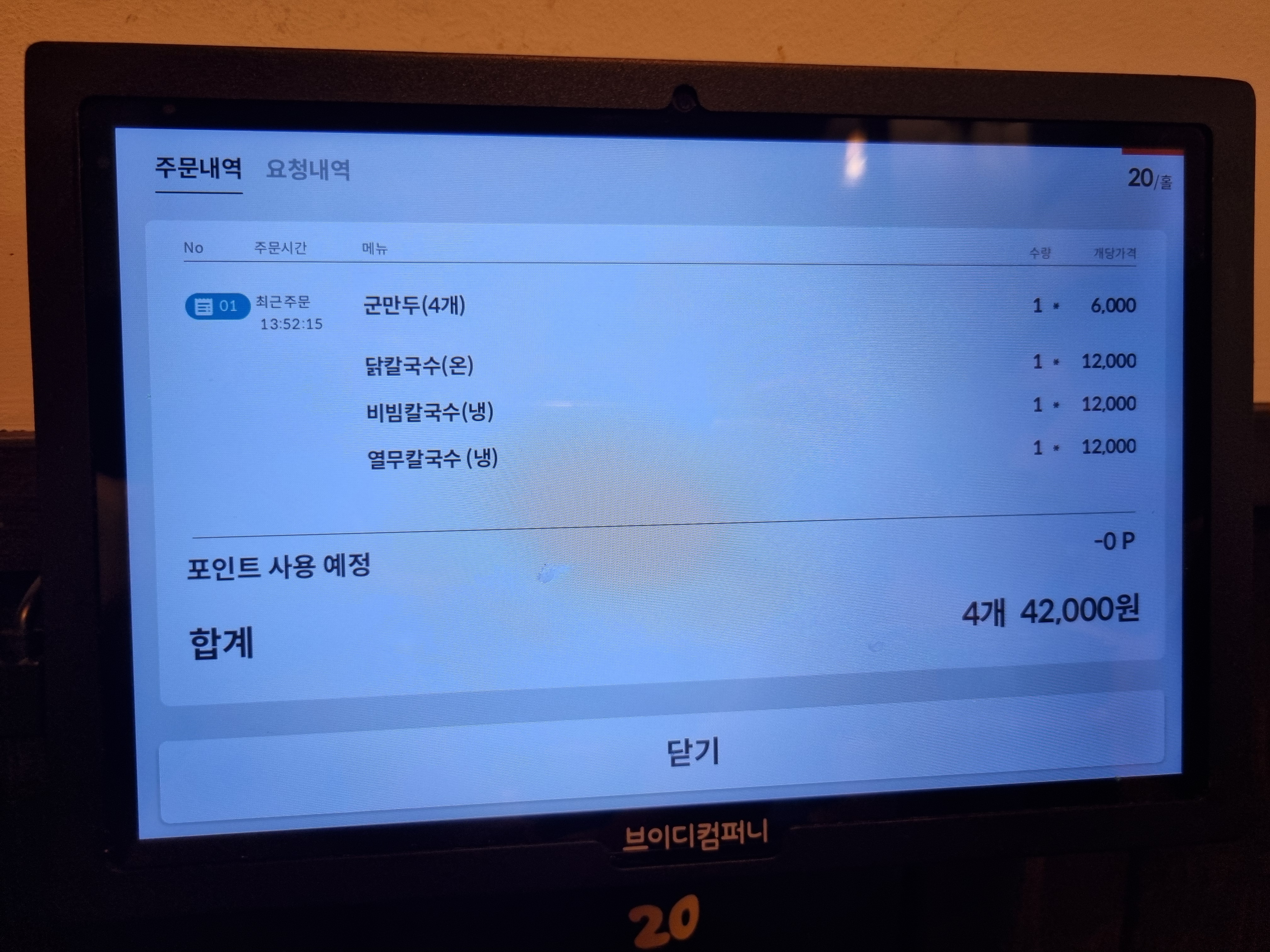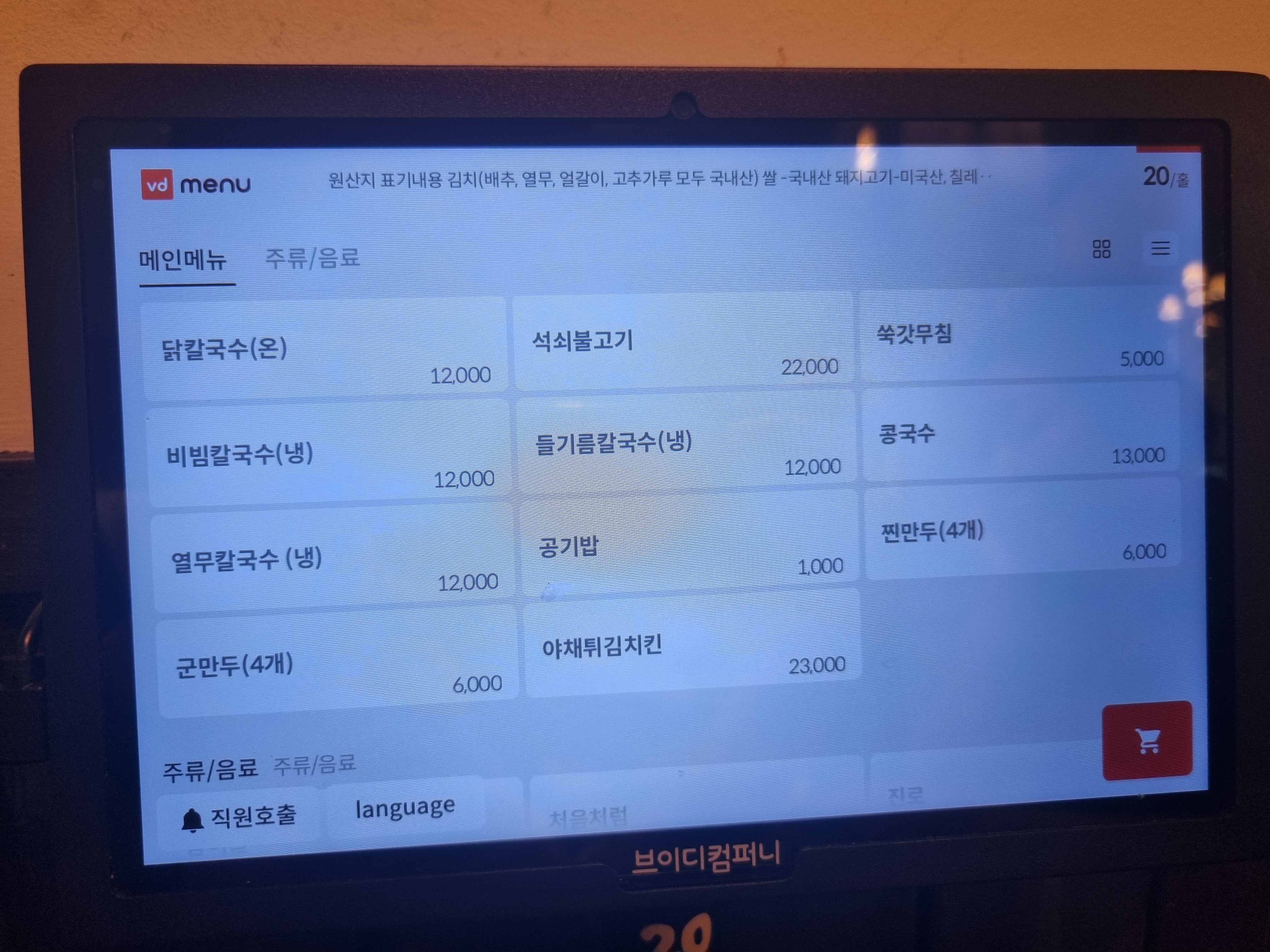 자리마다 배치된 키오스크에서 주문을 합니다.