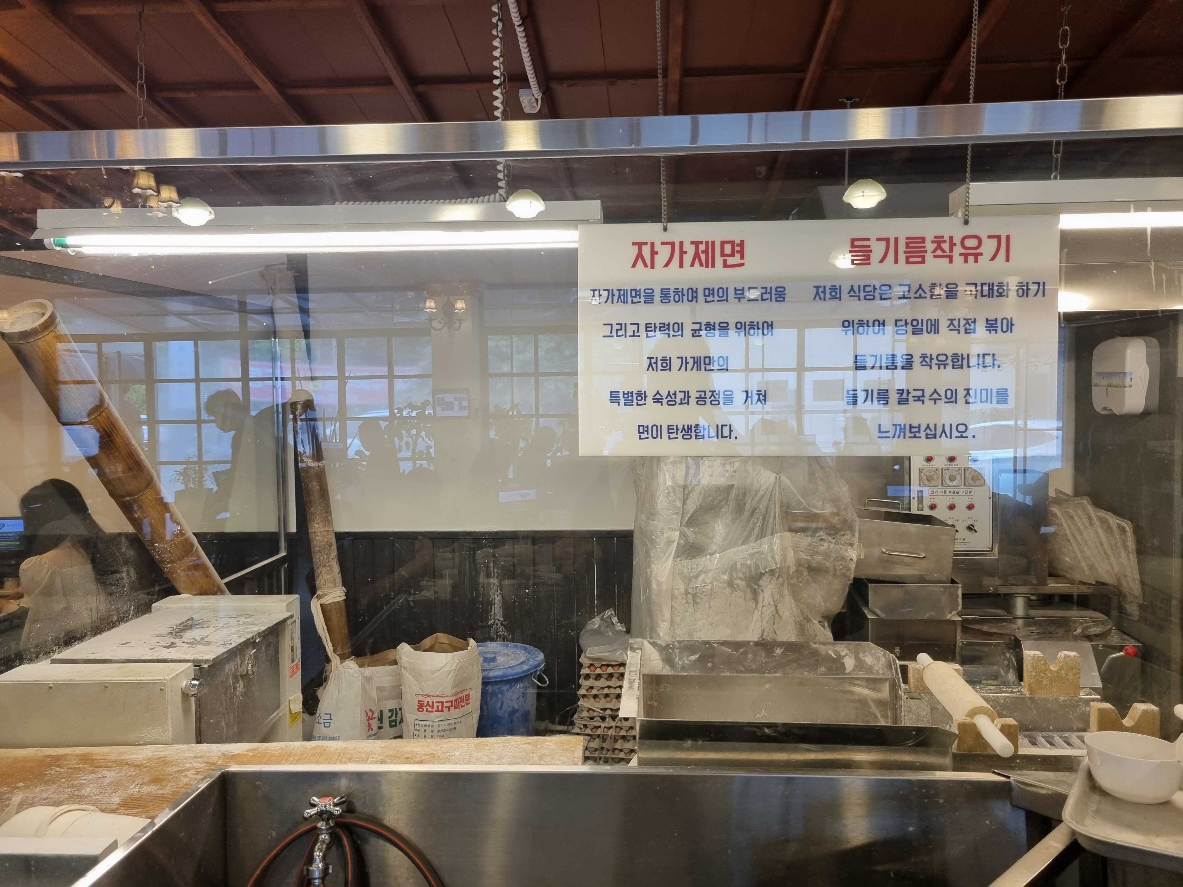 자가제면을 통해 면의 부드러움 그리고 탄력의 균형을 위해 율동칼국수만의 특별한 숙성과 공정을 거쳐 면이 탄생한다고 하네요.
