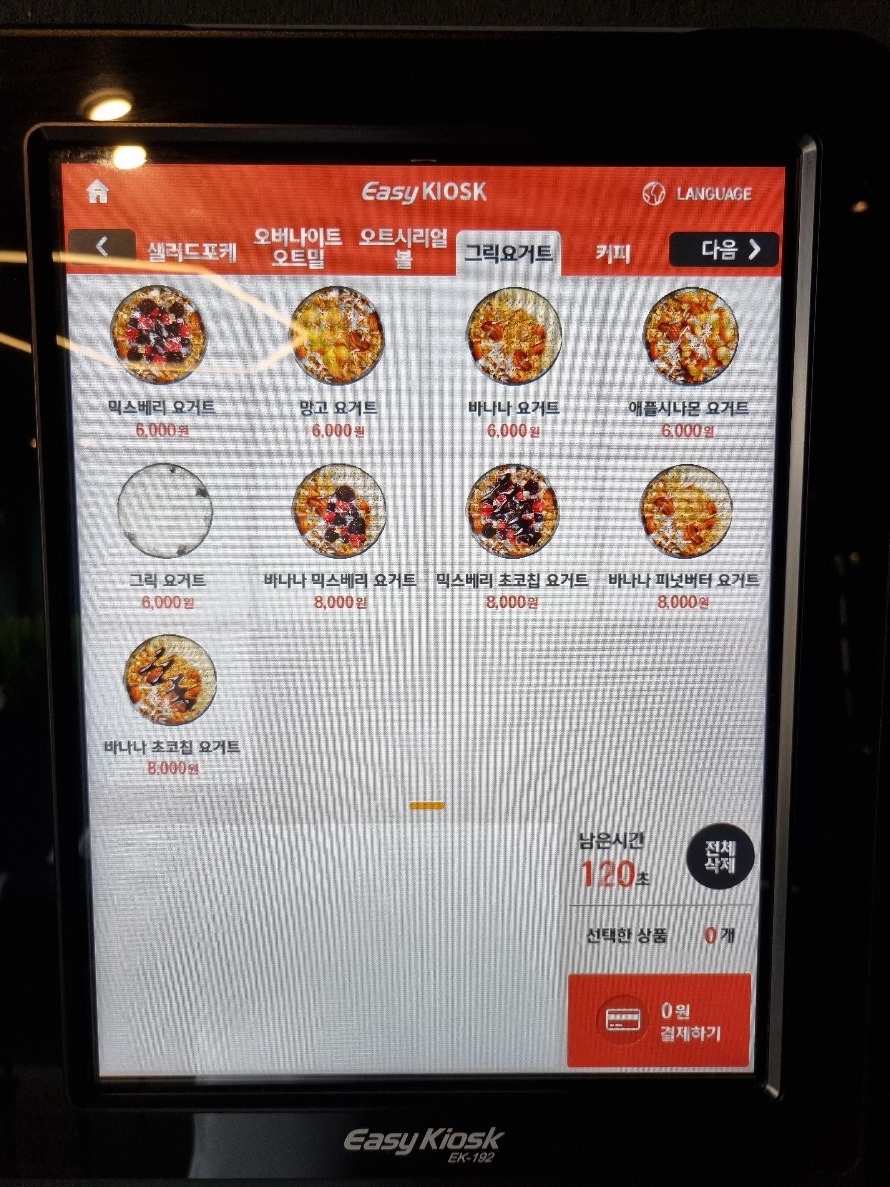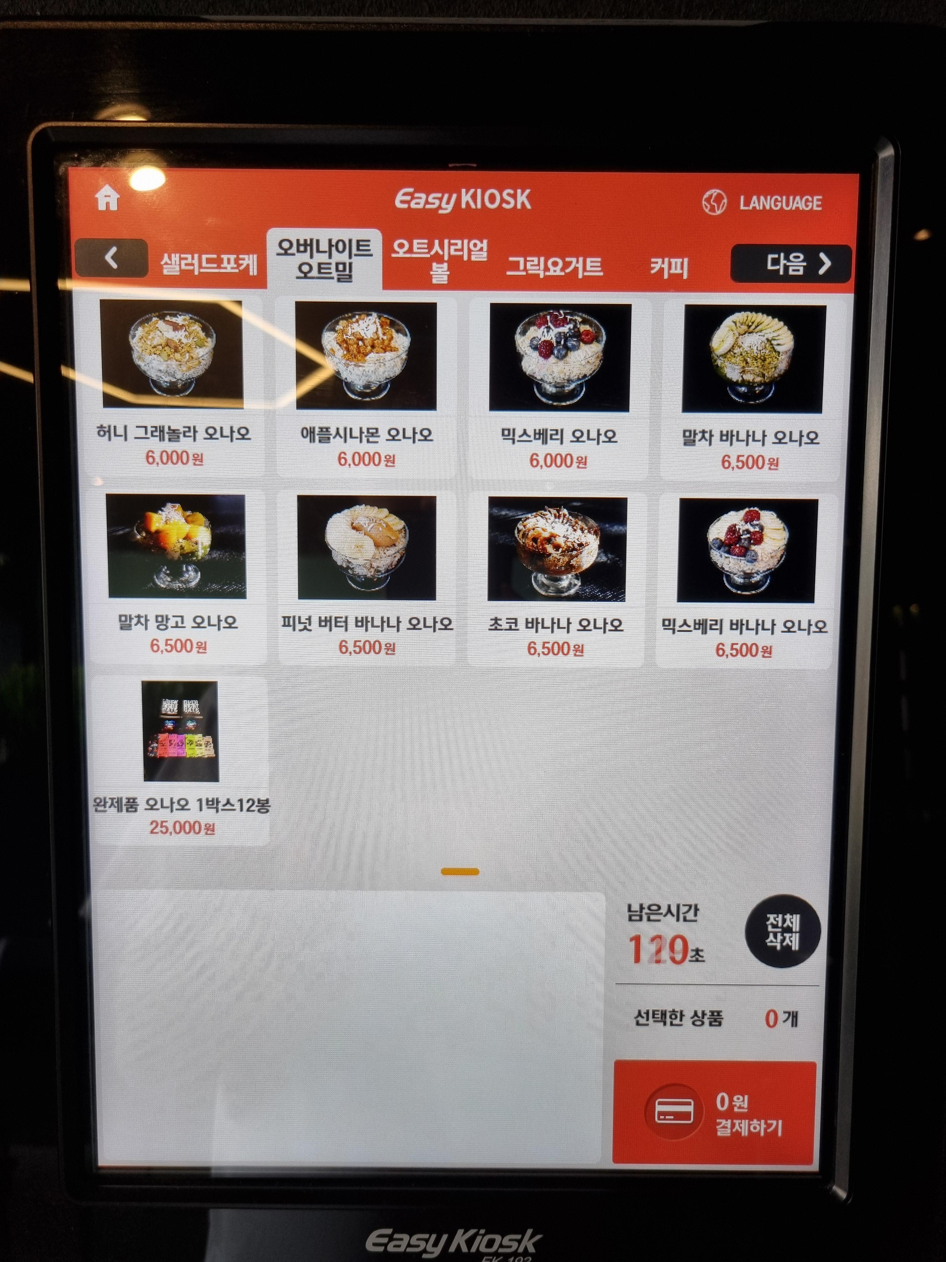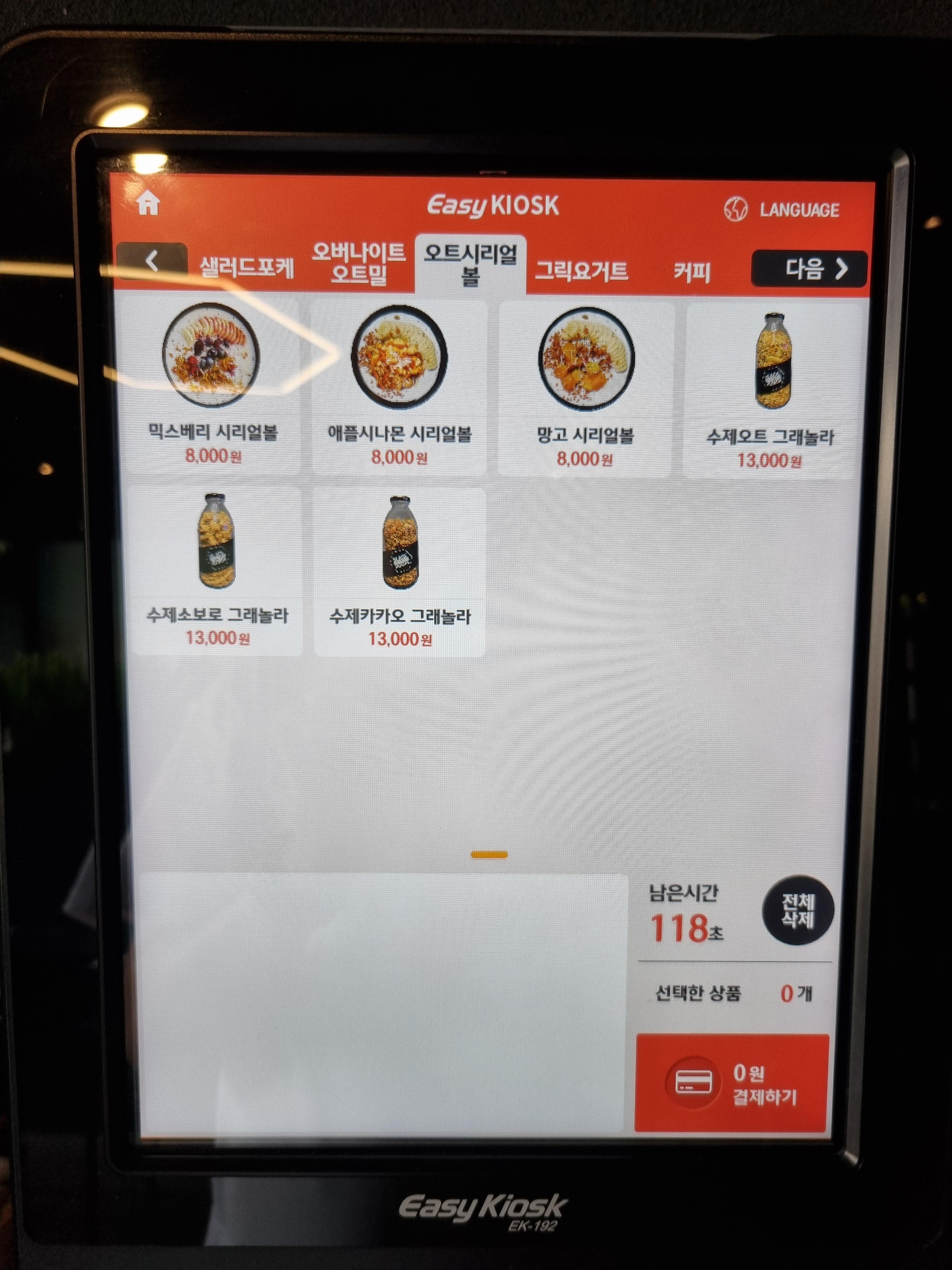 오트시리얼볼 메뉴는 아래와 같습니다.