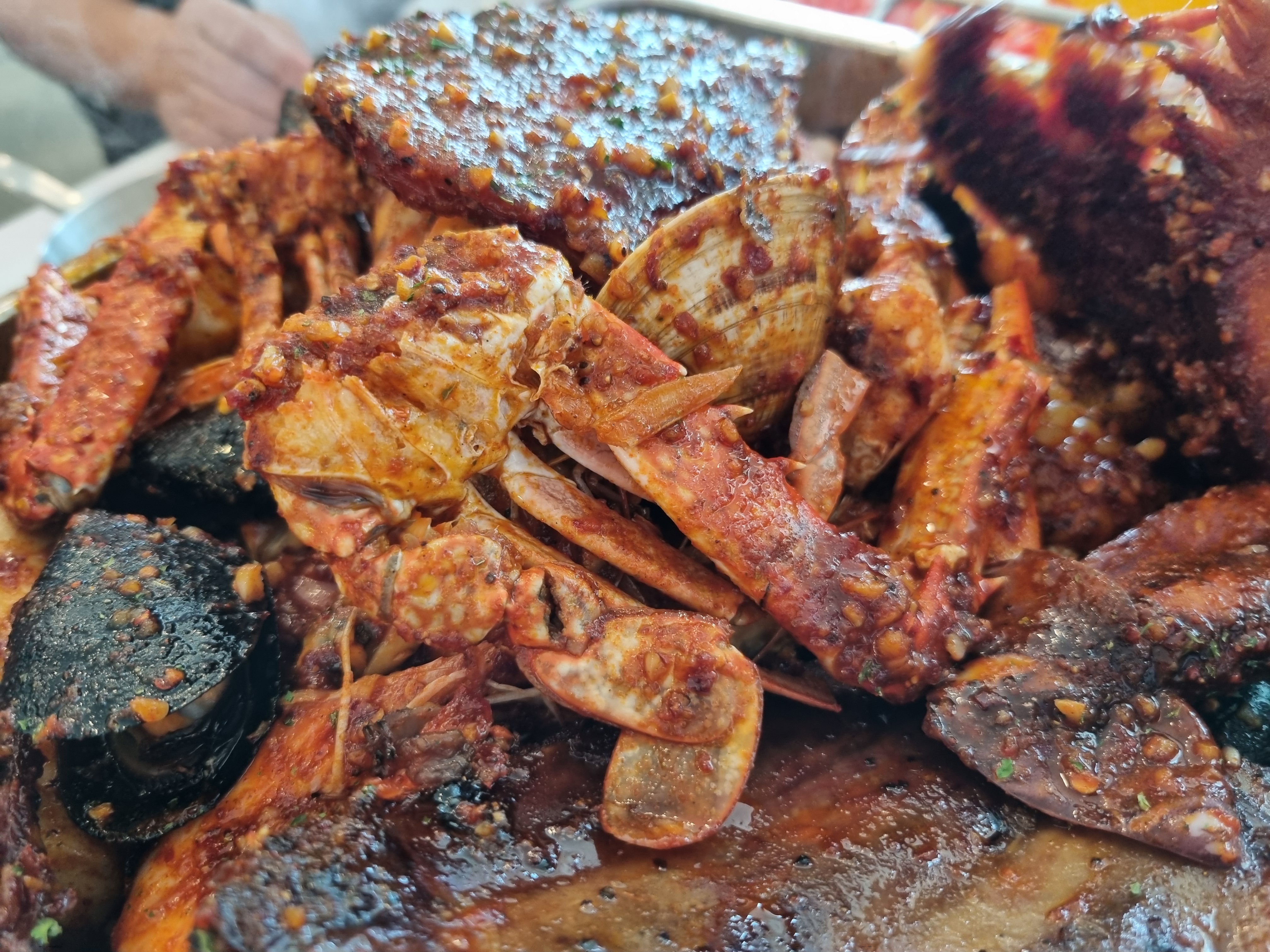 오징어, 조개, 새우, 꽃게 등 다양한 해산물과 옥수수, 소세지가 어울려 아주 양도 많고 맛있습니다.