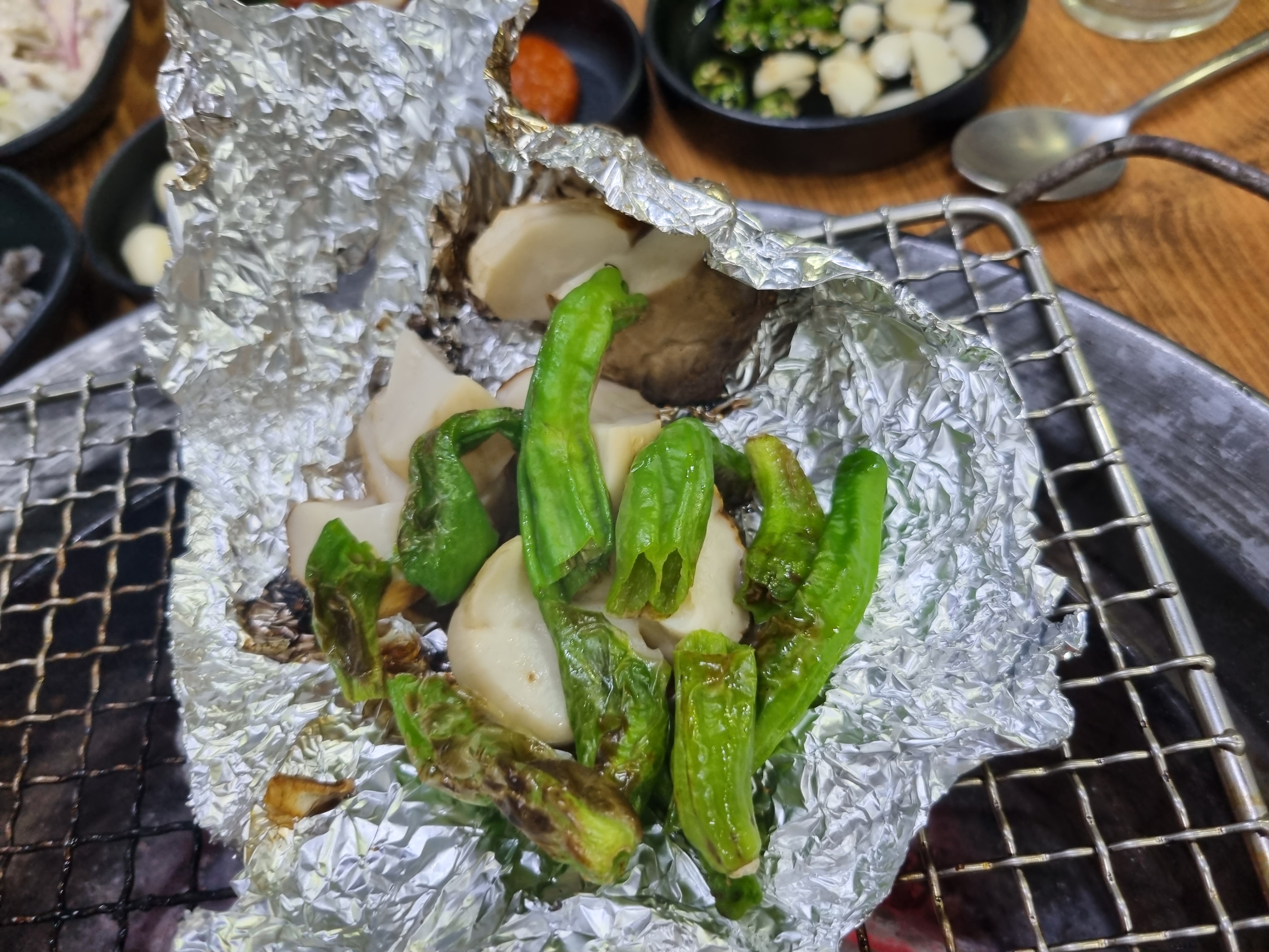 꽈리 고추?? 와 함께 부채살을 먼저 굽습니다.
