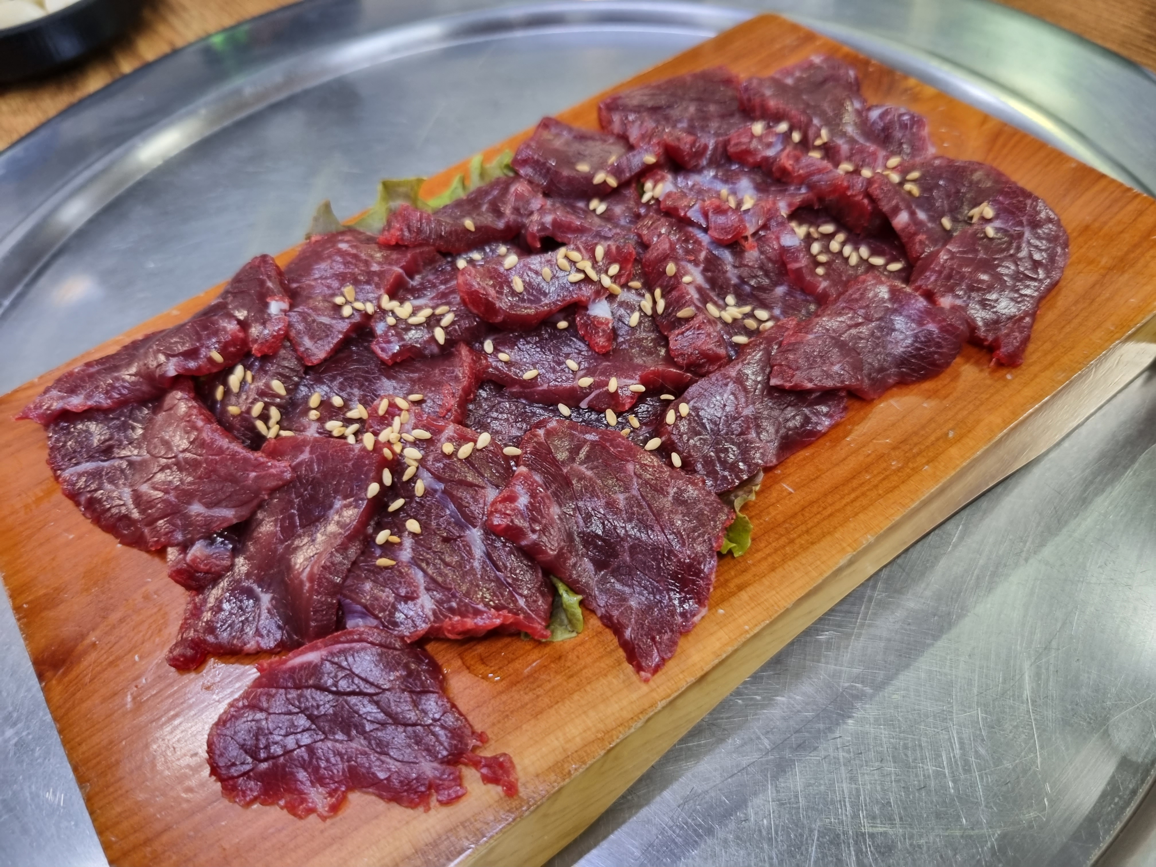 가격이 조금 나가는 관계로 육사시미 먹을바에야 다른거 하나 더 먹지... 라는 가성비 주의여서 잘 안먹던 부위인데 이번에 먹어봤습니다.