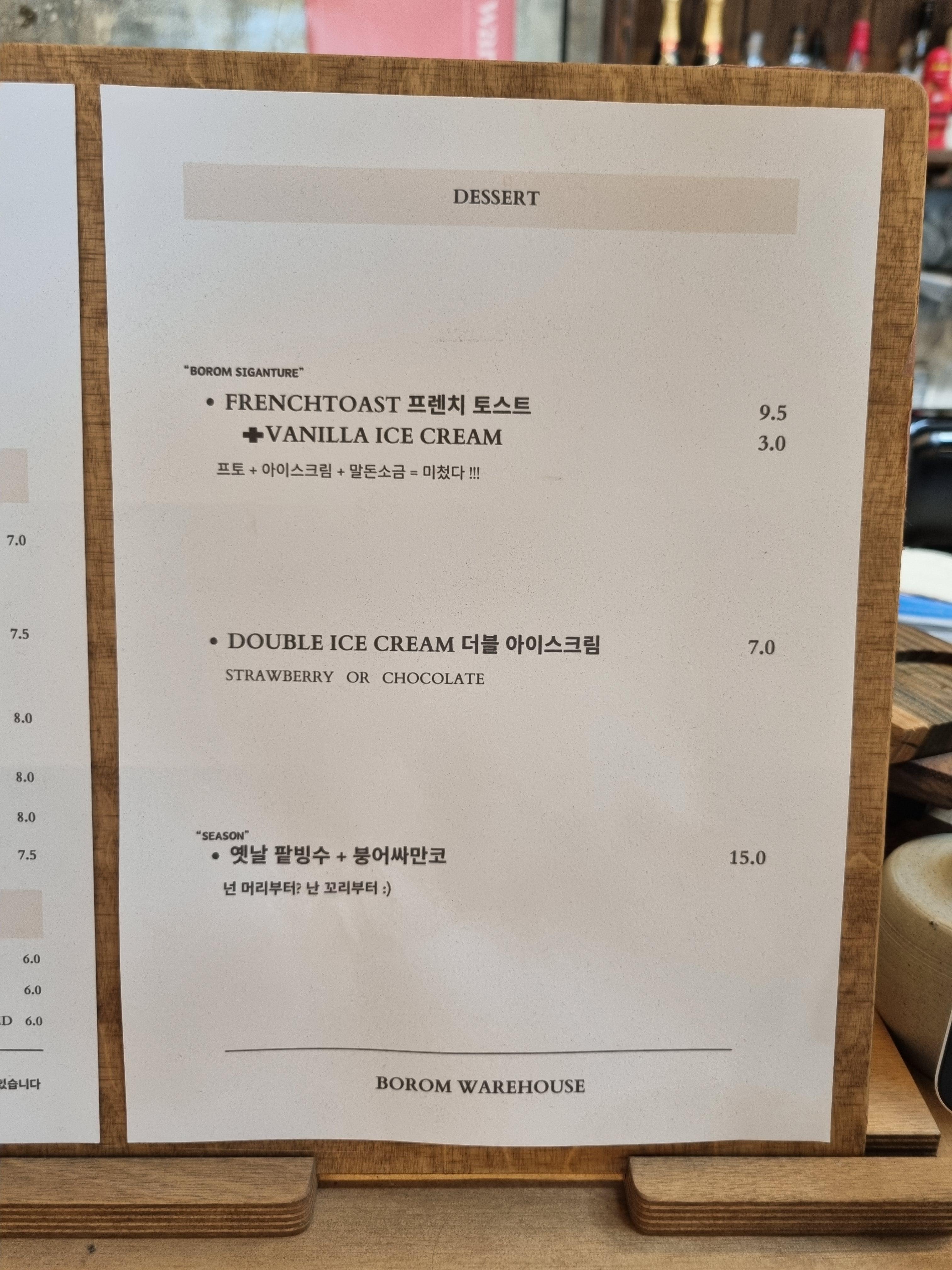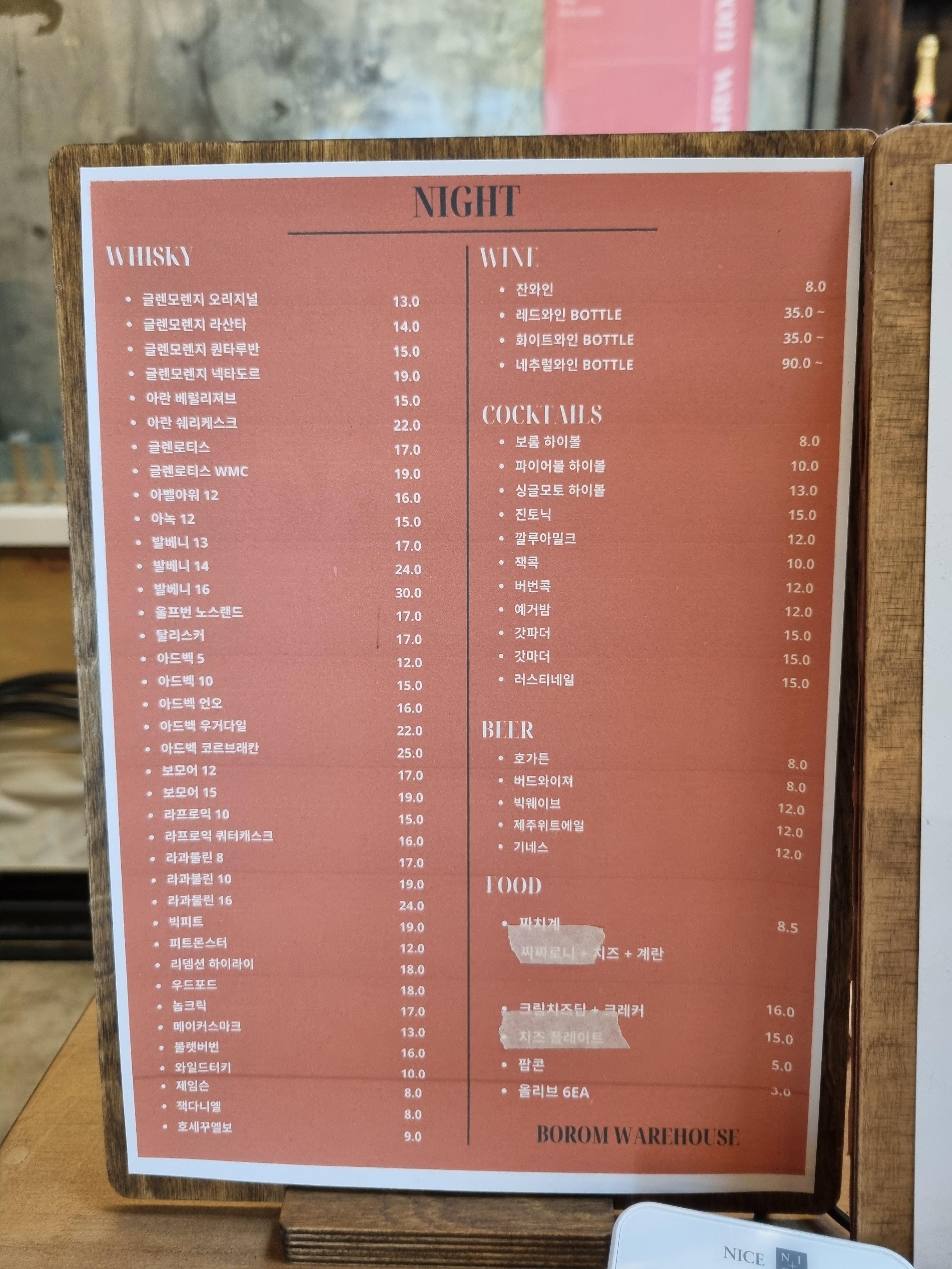 보롬창고는 낮에는 커피와 디저트 그리고 밤에는 위스키와 와인, 칵테일 등을 파는 곳입니다.
