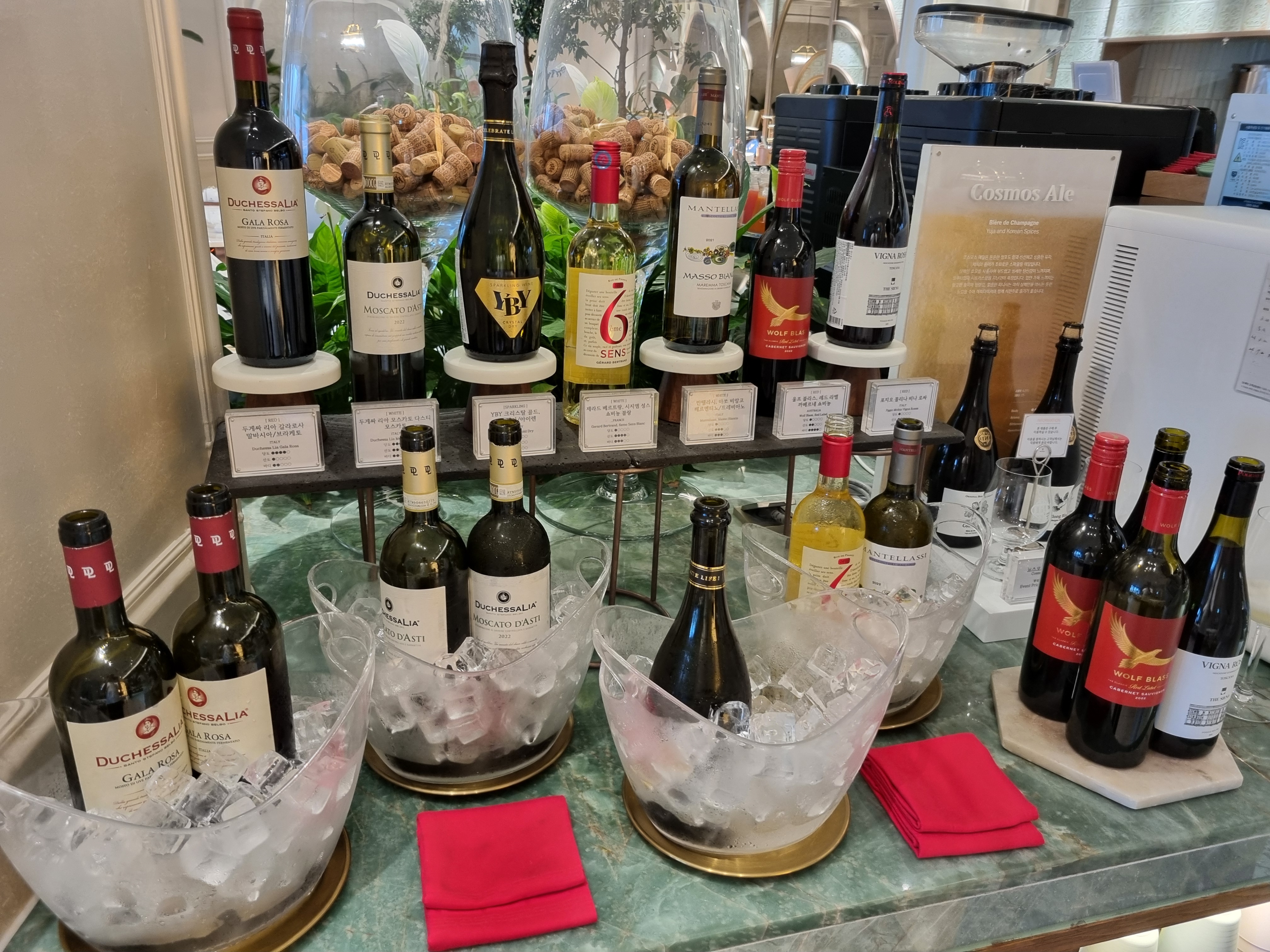 입구에 들어서자마자 다양한 종류의 와인이 준비되어 있는데 와인 무제한이다보니 이것 저것 여러 가지 와인을 맛 볼 수 있어서 좋습니다.