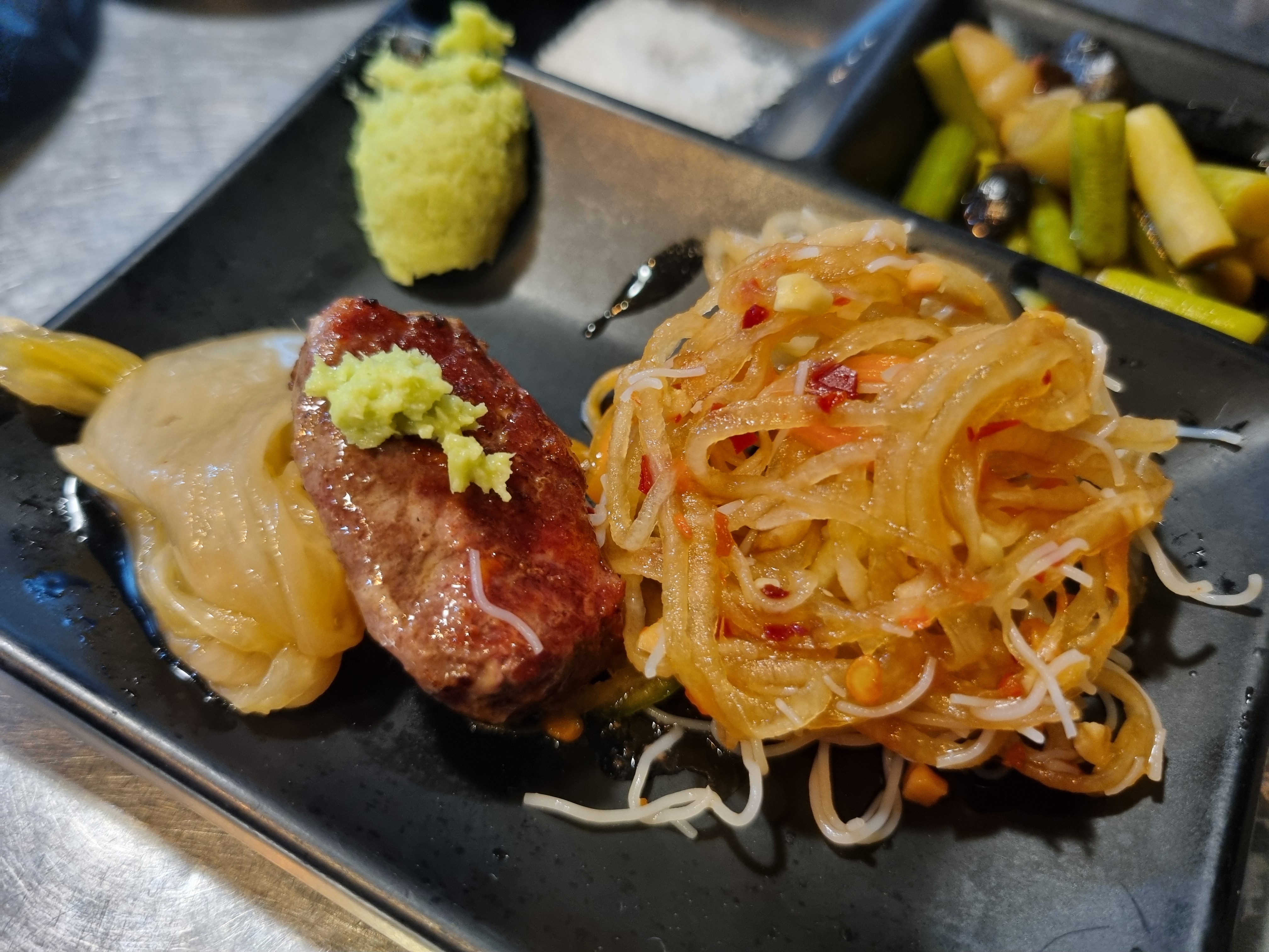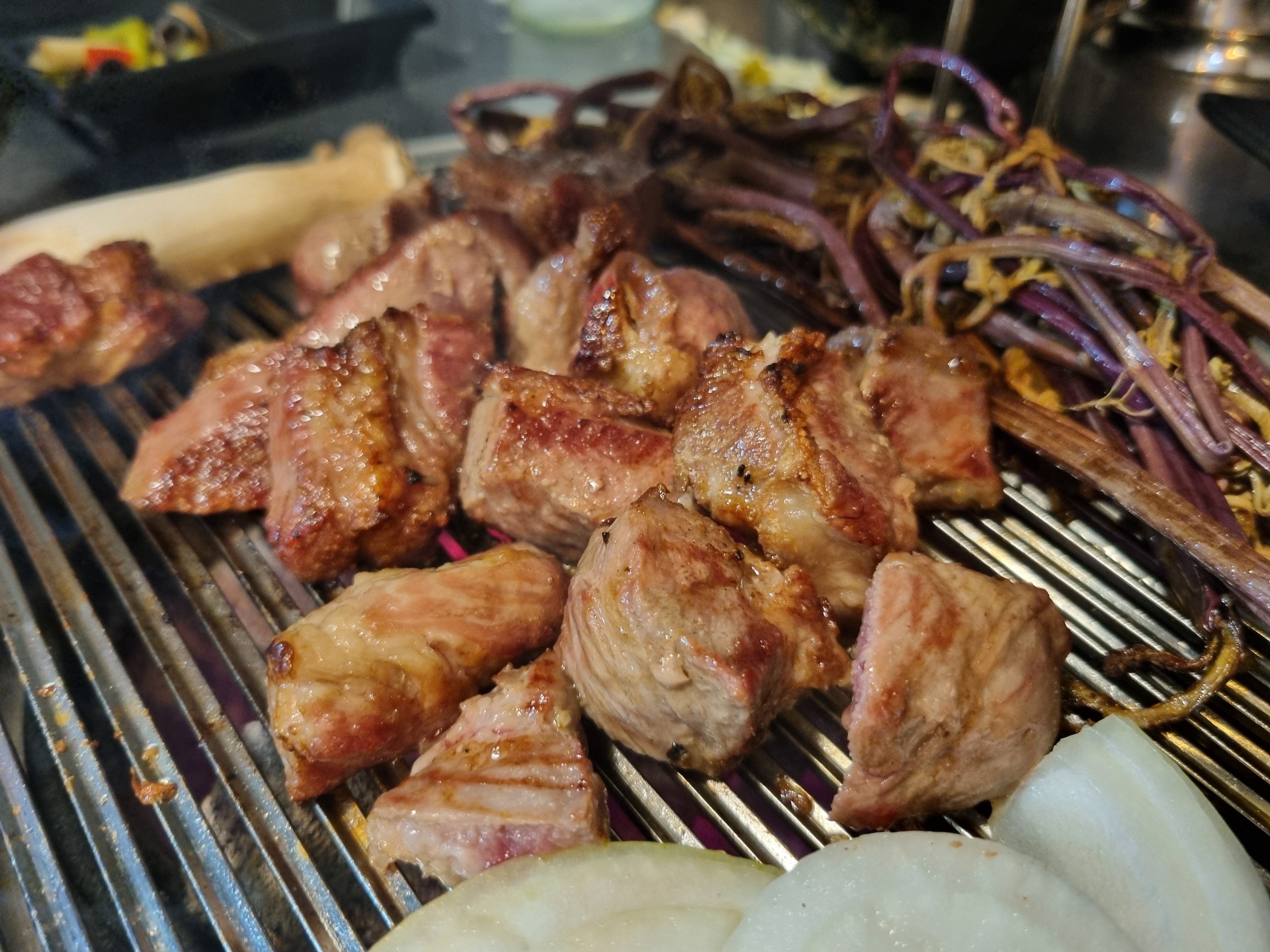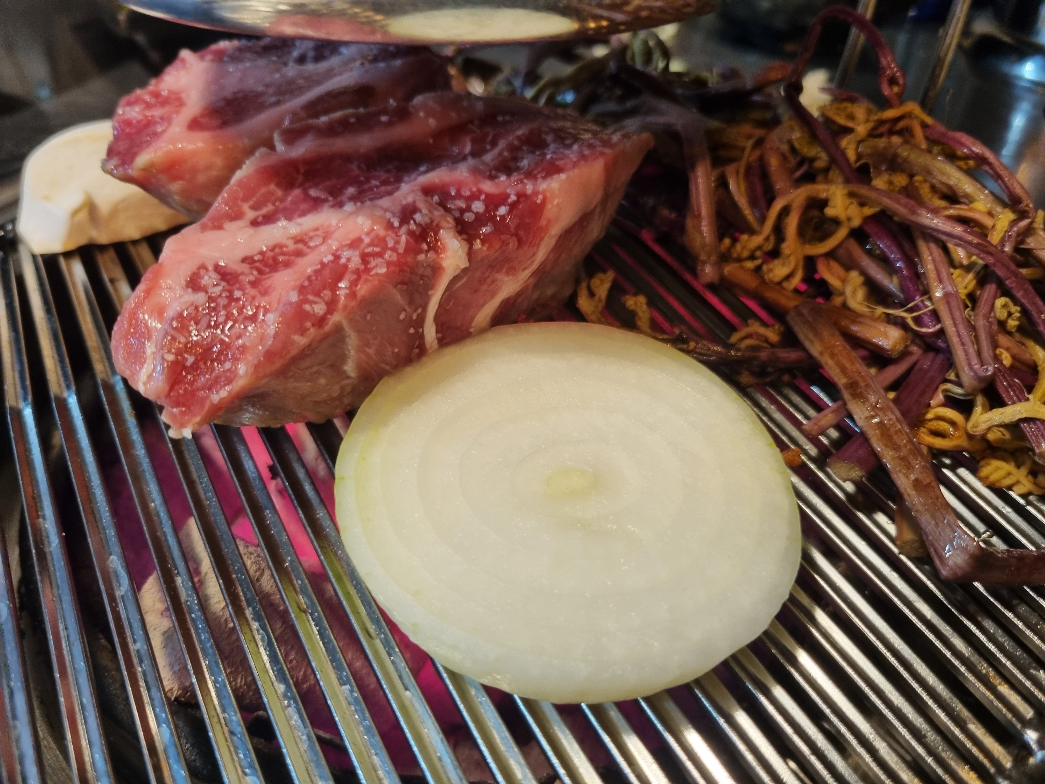 우선 기본적으로 이베리코 목살 2개와 소주를 주문했는데 먹다보니 너무 맛있어서 1인분 추가하고 마무리로 소갈비살 1인분도 추가해서 총 4인분을 먹었습니다.