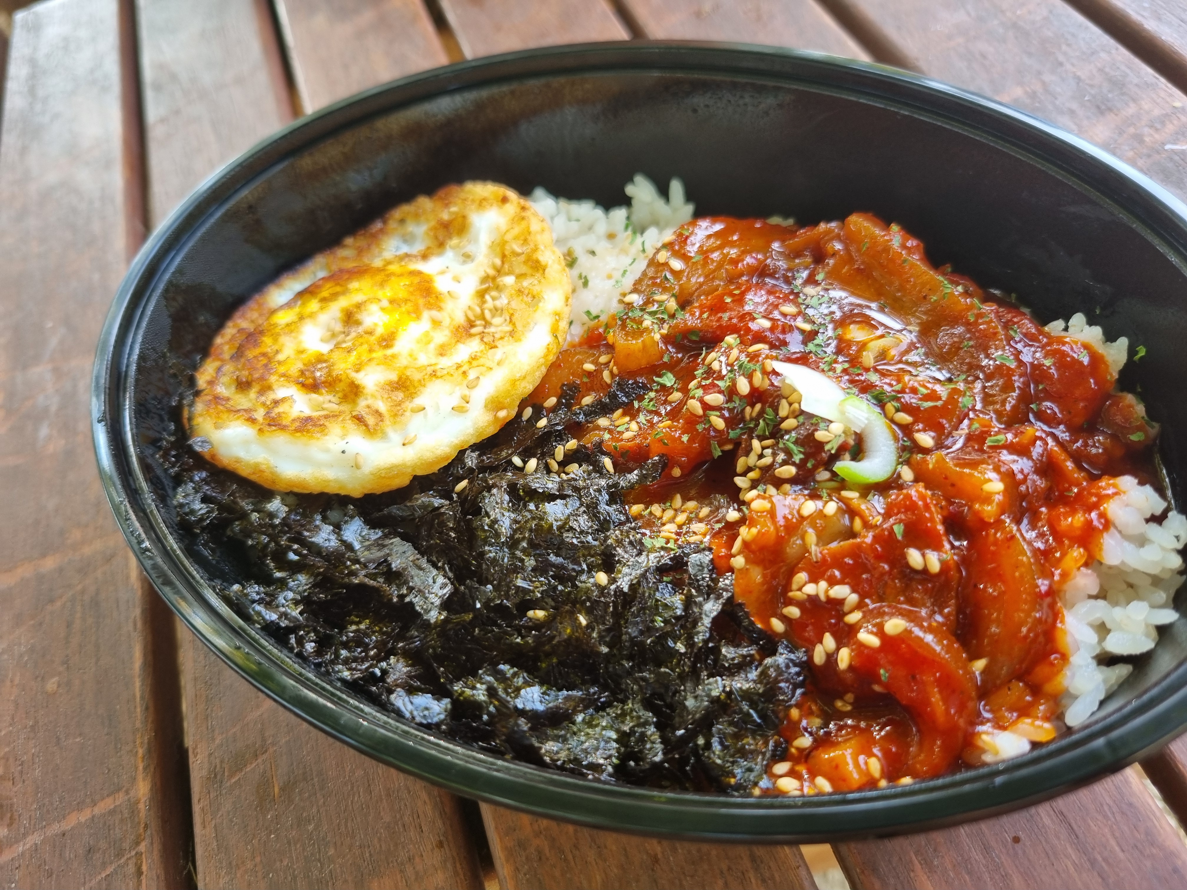 뛰어놀기전 간단히 배를 채우려 불향 가득 족발 덮밥과 애견용 멍주스 사과맛을 구매했습니다.