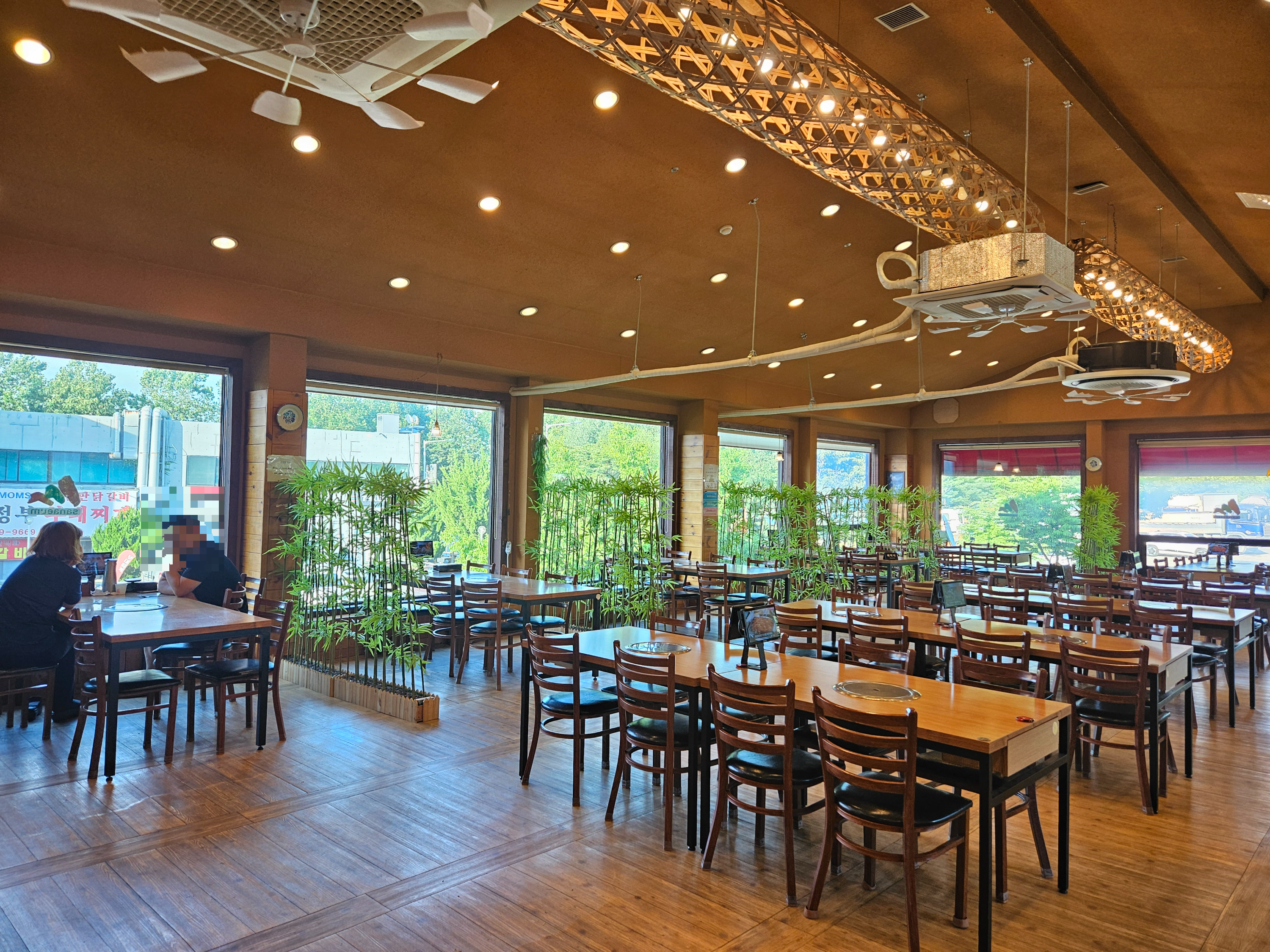 주차장에 주차를 하신 후 2층으로 올라오시면 이렇게 뻥 뚫린 창으로 개방감을 느낄 수 있고 매우 깔끔한 식당이라는 느낌을 받을 수 있습니다.