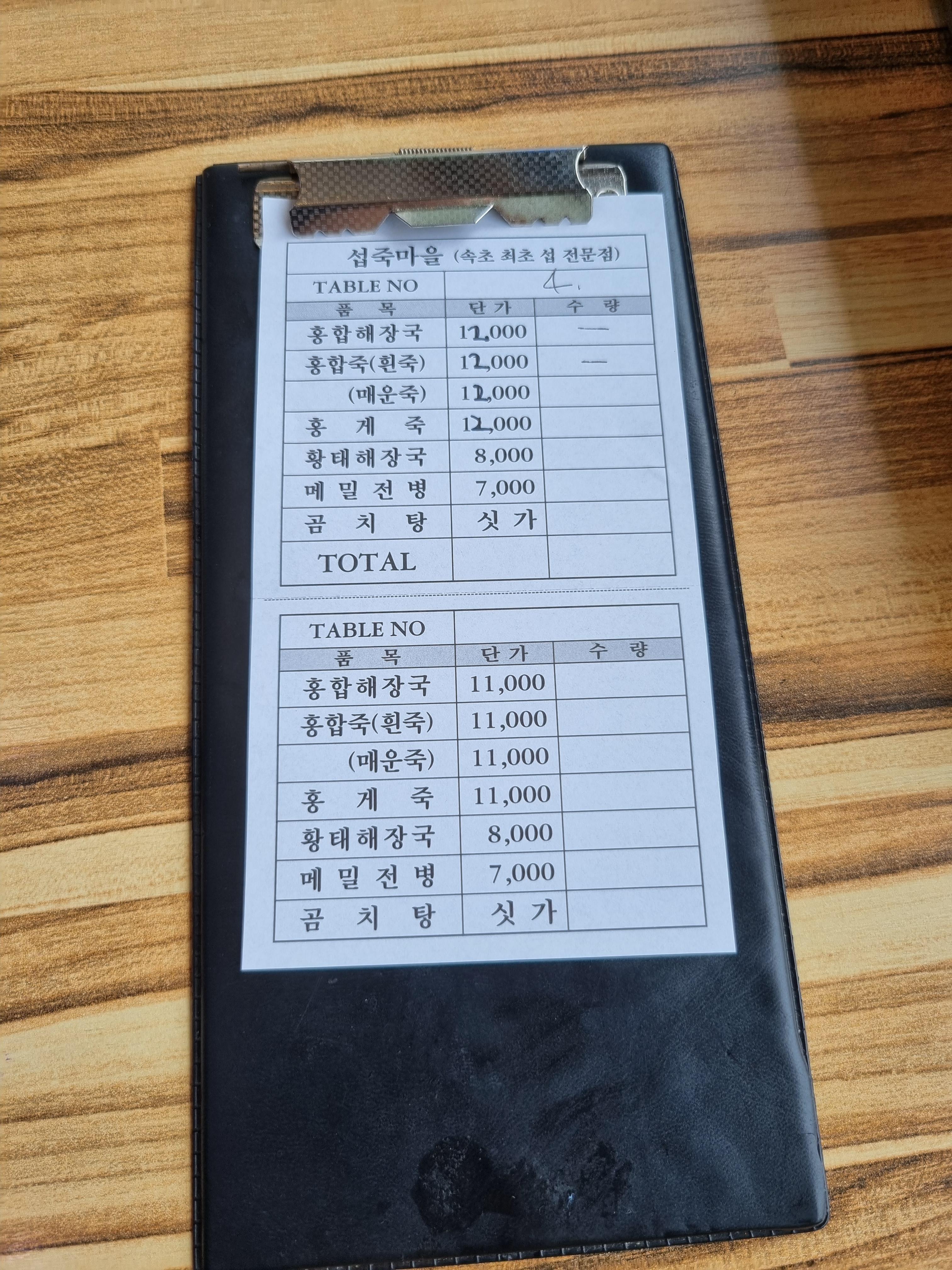 본죽이나 죽을 파는 가게에서는 본 기억이 없는 단어인 " 섭죽 " 을 속초에 와서 배워갑니다.