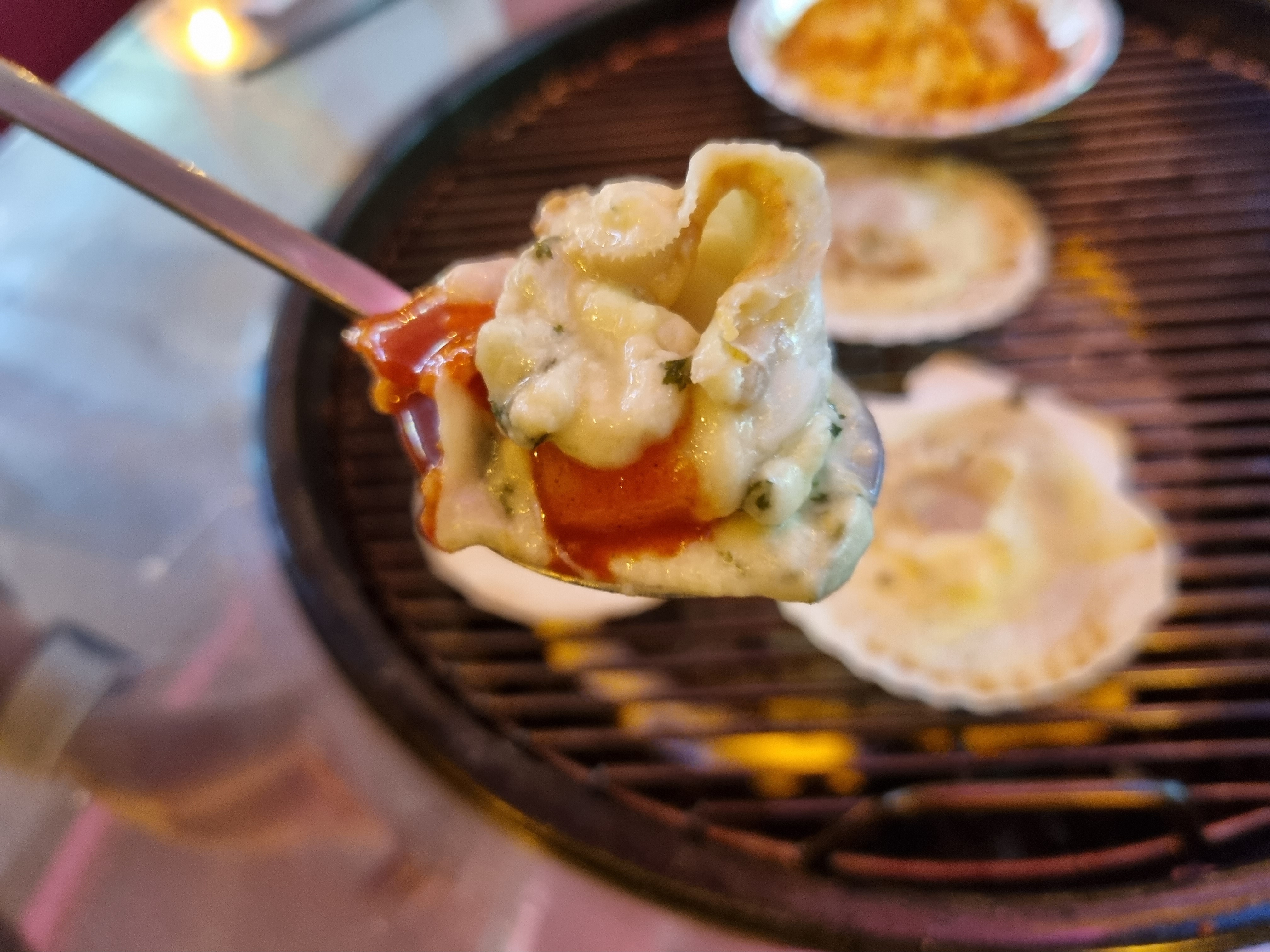 회는 전 날 먹었기 때문에 이번에는 조개구이를 먹어보기로 했습니다.