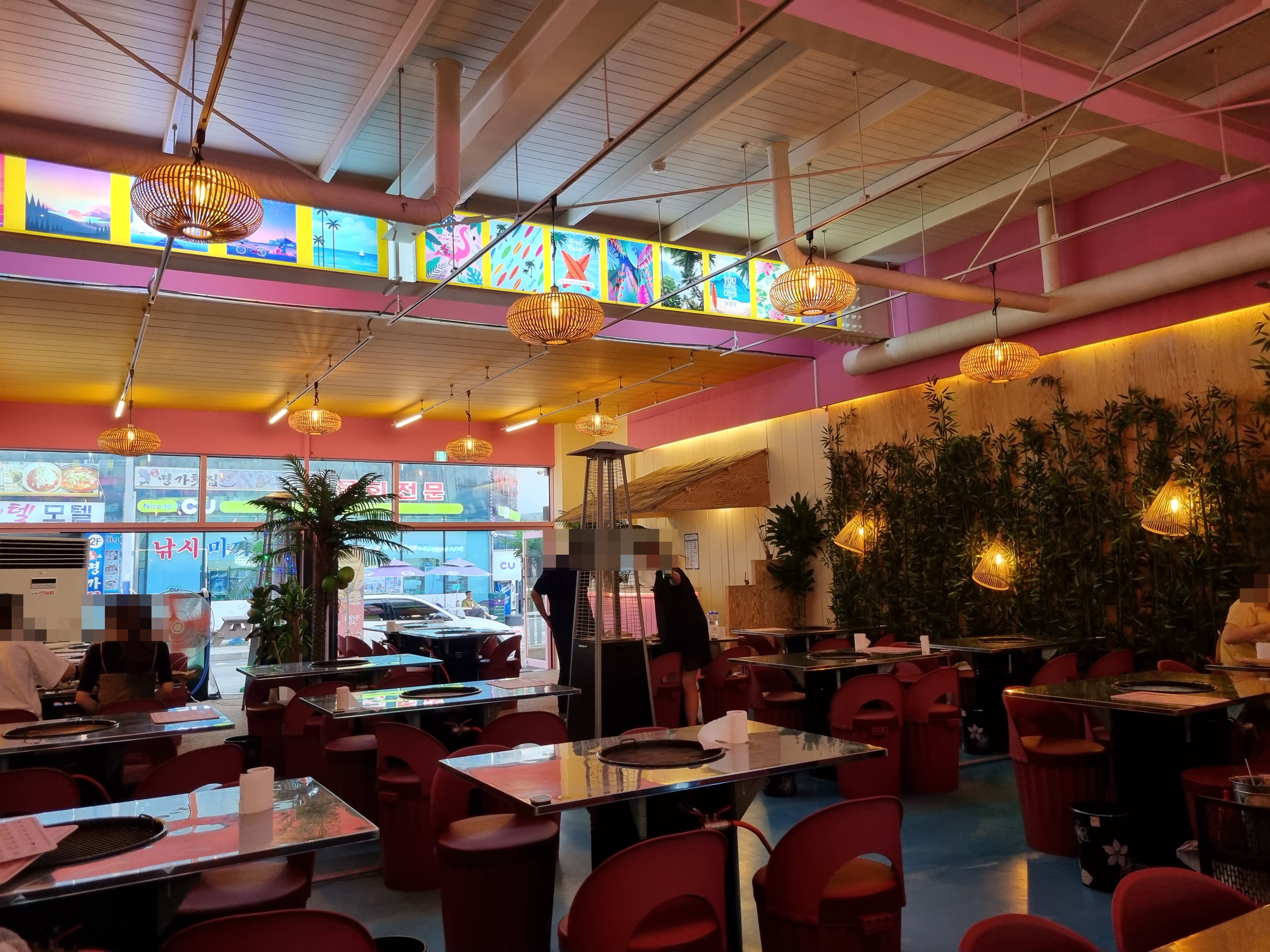 실내는 이렇게 야자수도 있고 무언가 동남아 느낌이 나는 컨셉입니다.