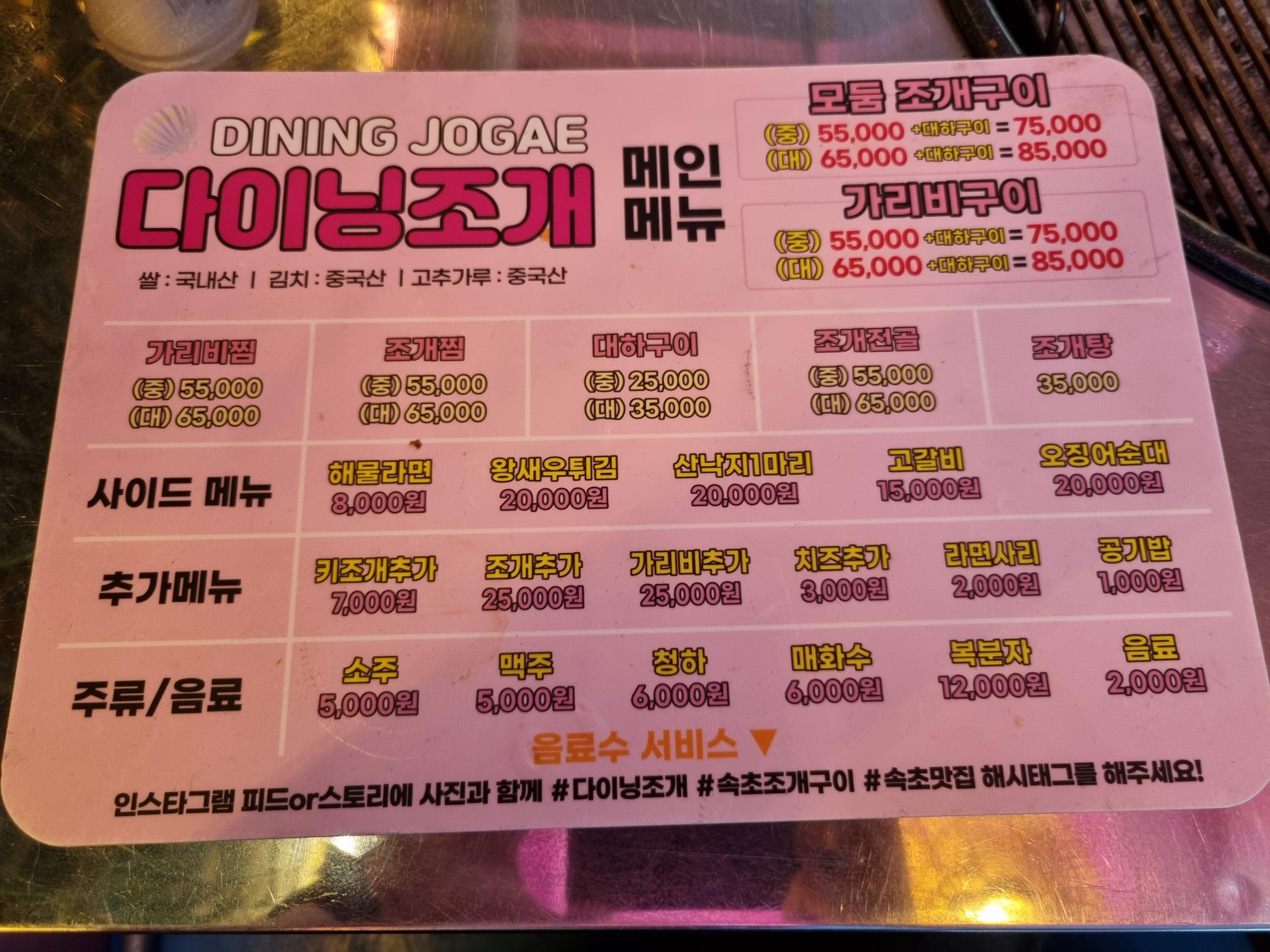 ※ 강원도 속초 라마다 호텔 근처 조개구이 맛집 다이닝 조개 방문 후기