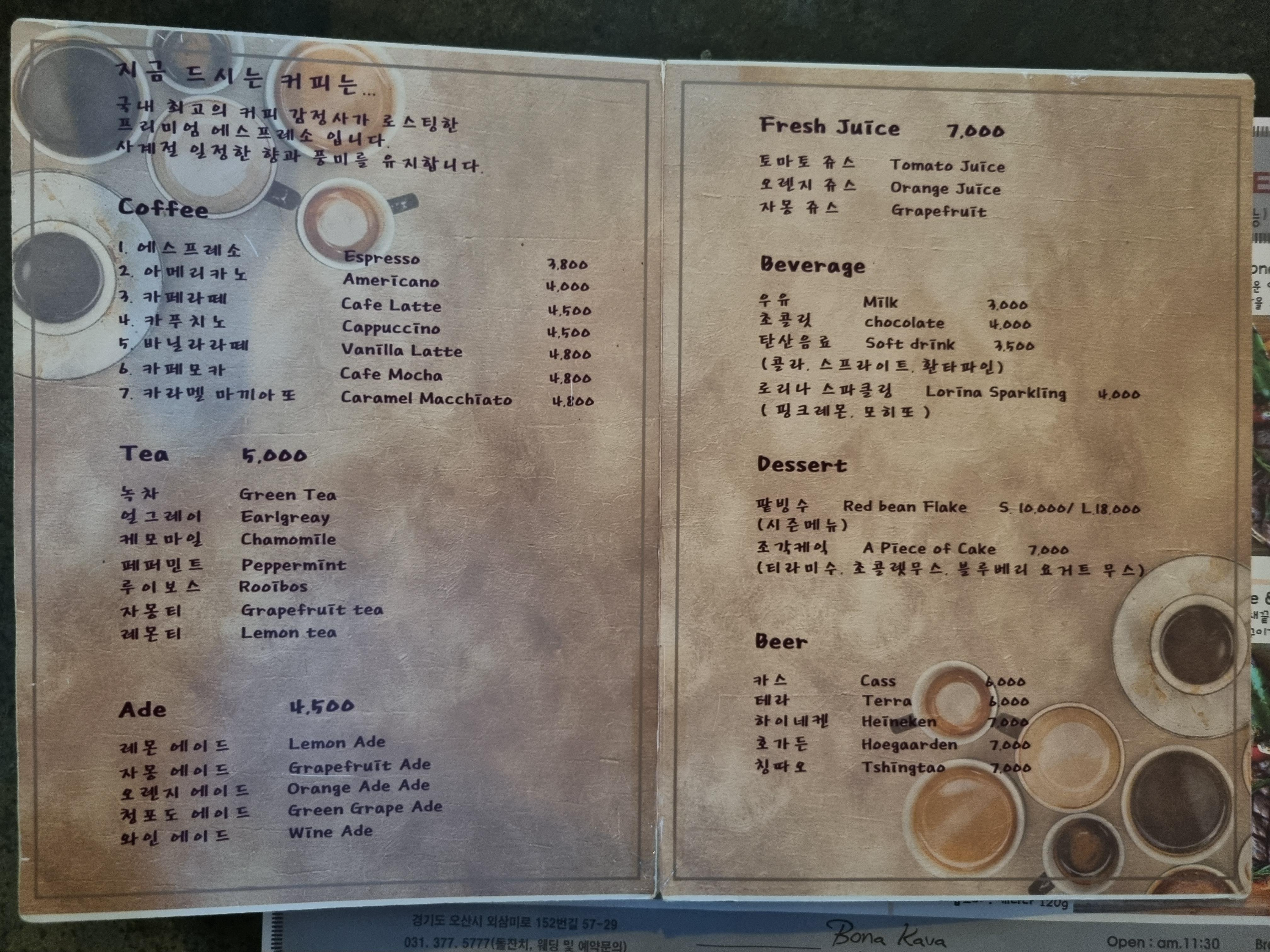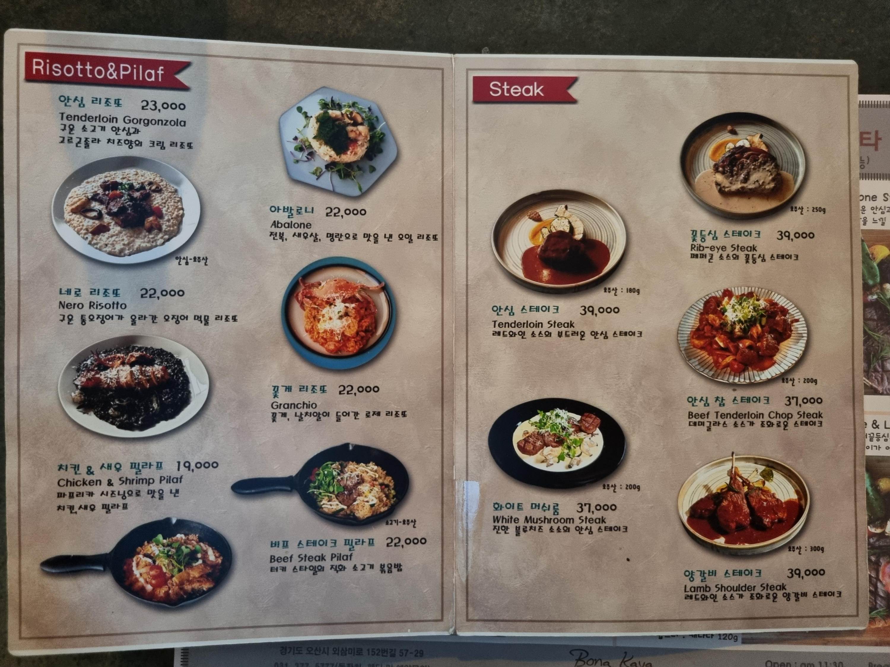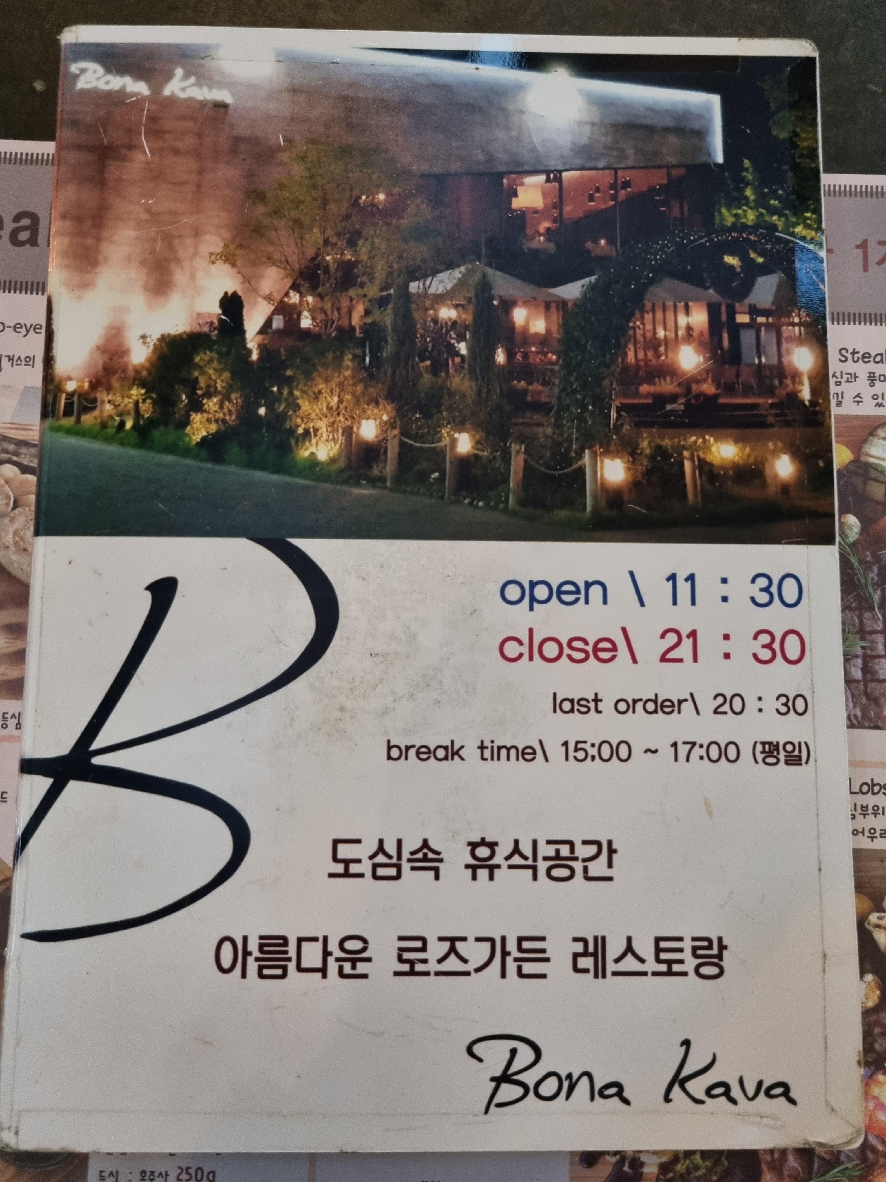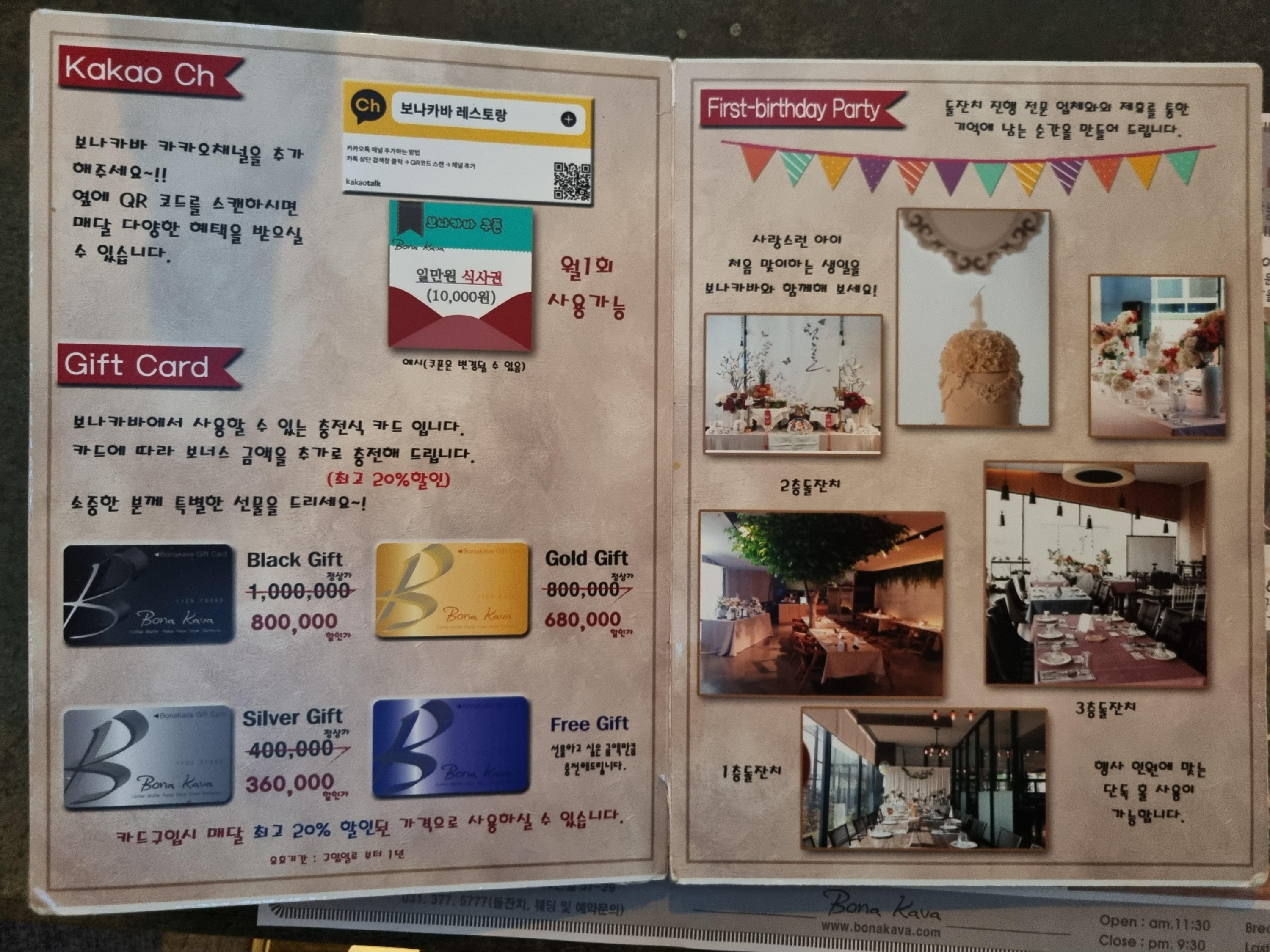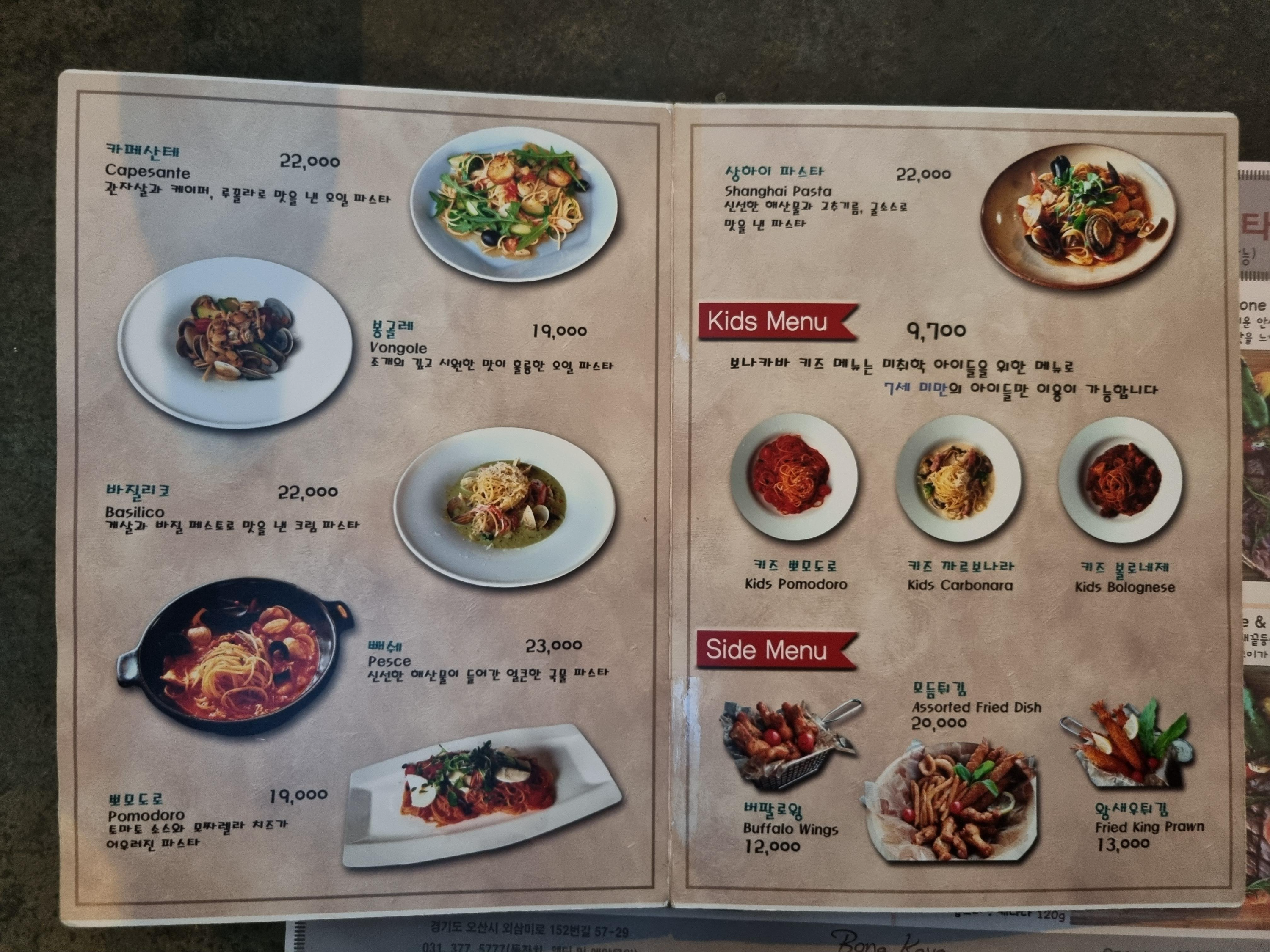 보나카바의 메뉴판입니다.