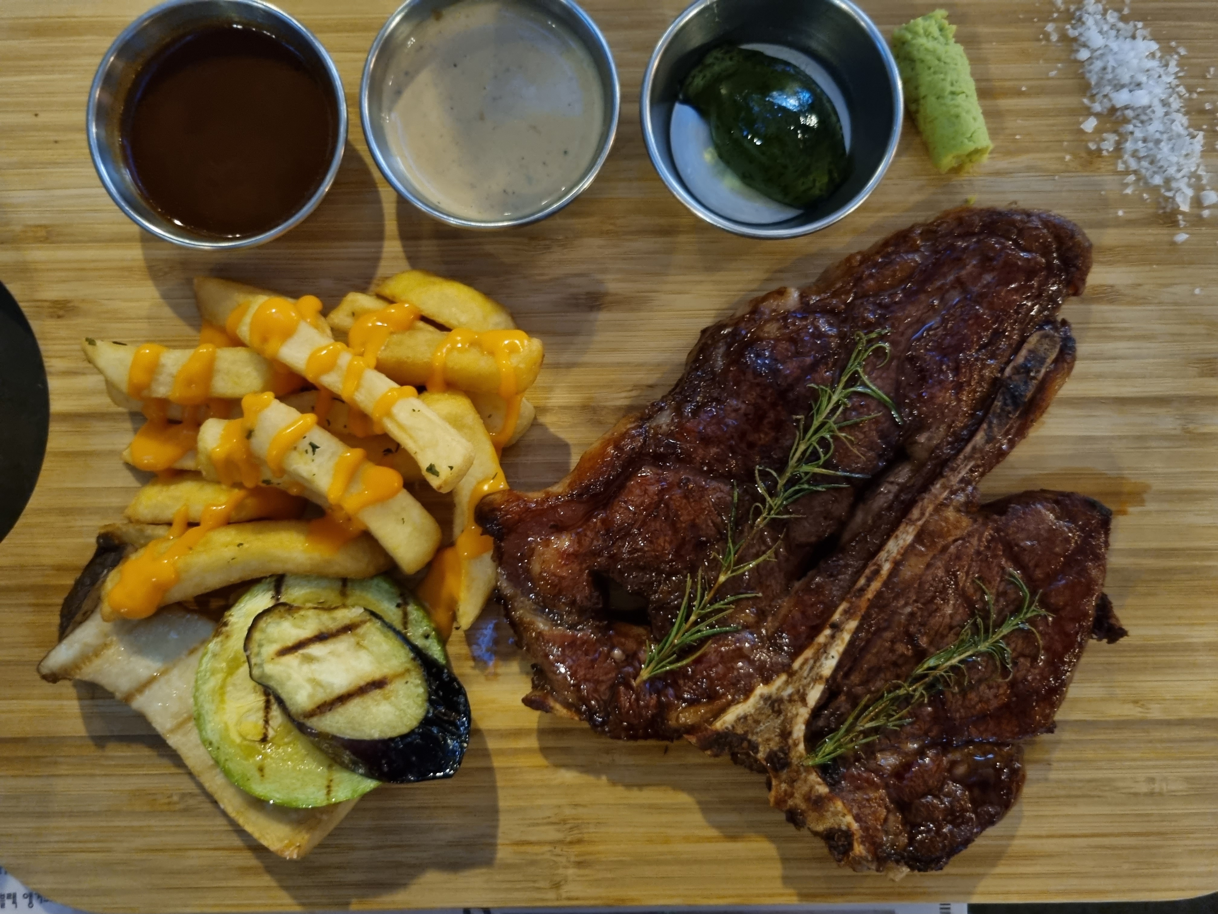 스테이크는 소스보다 소금에 찍어 먹는걸 선호해서 소금만 주구장창 찍어먹었습니다.
