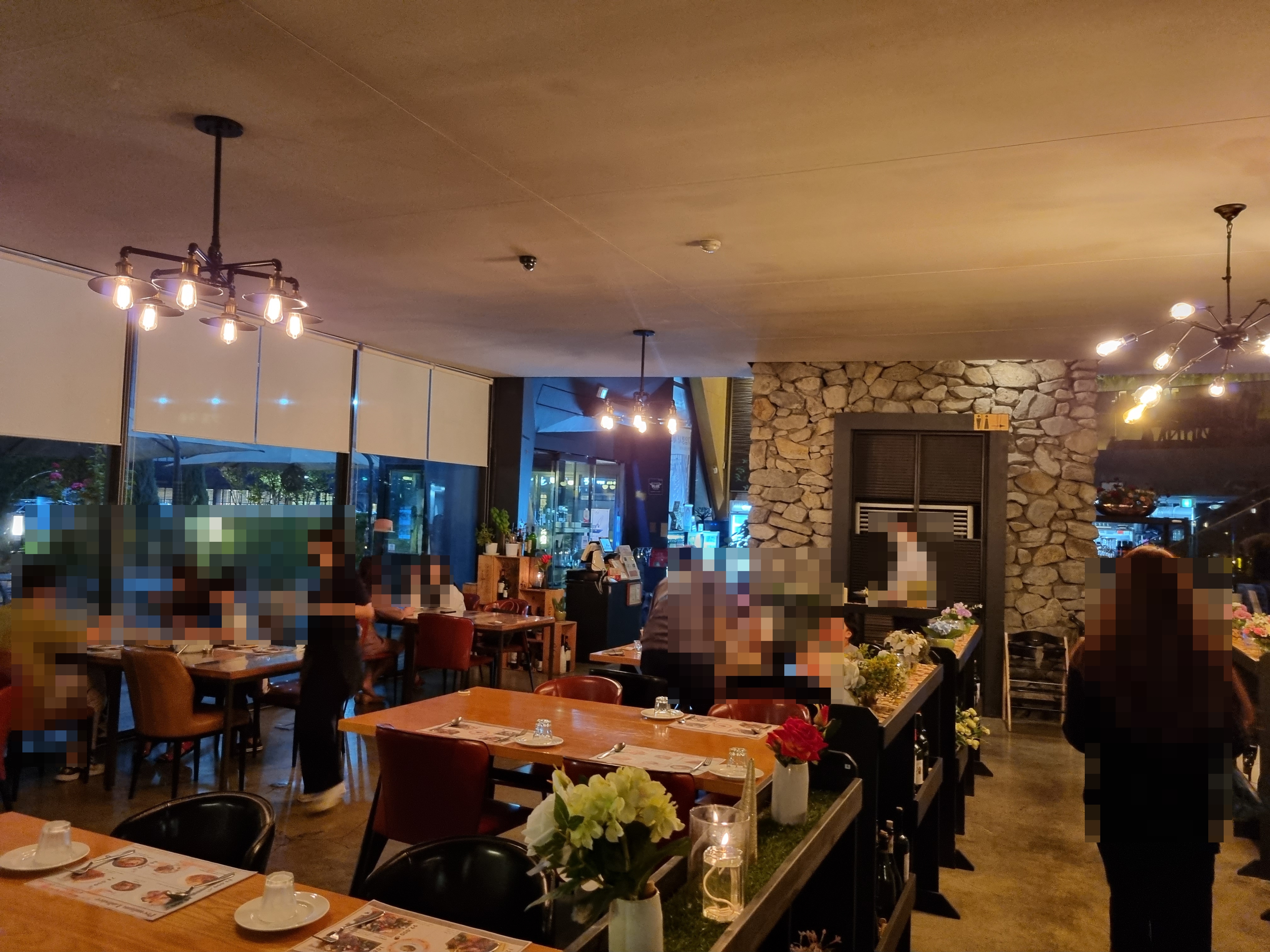 제 개인적인 생각이지만 가족 단위로 방문하신 분들은 이곳 실내 테이블에 앉으시고 밑에 사진에 있는 야외 느낌 나는 테이블에는 주로 커플들이 앉는 것 같습니다.