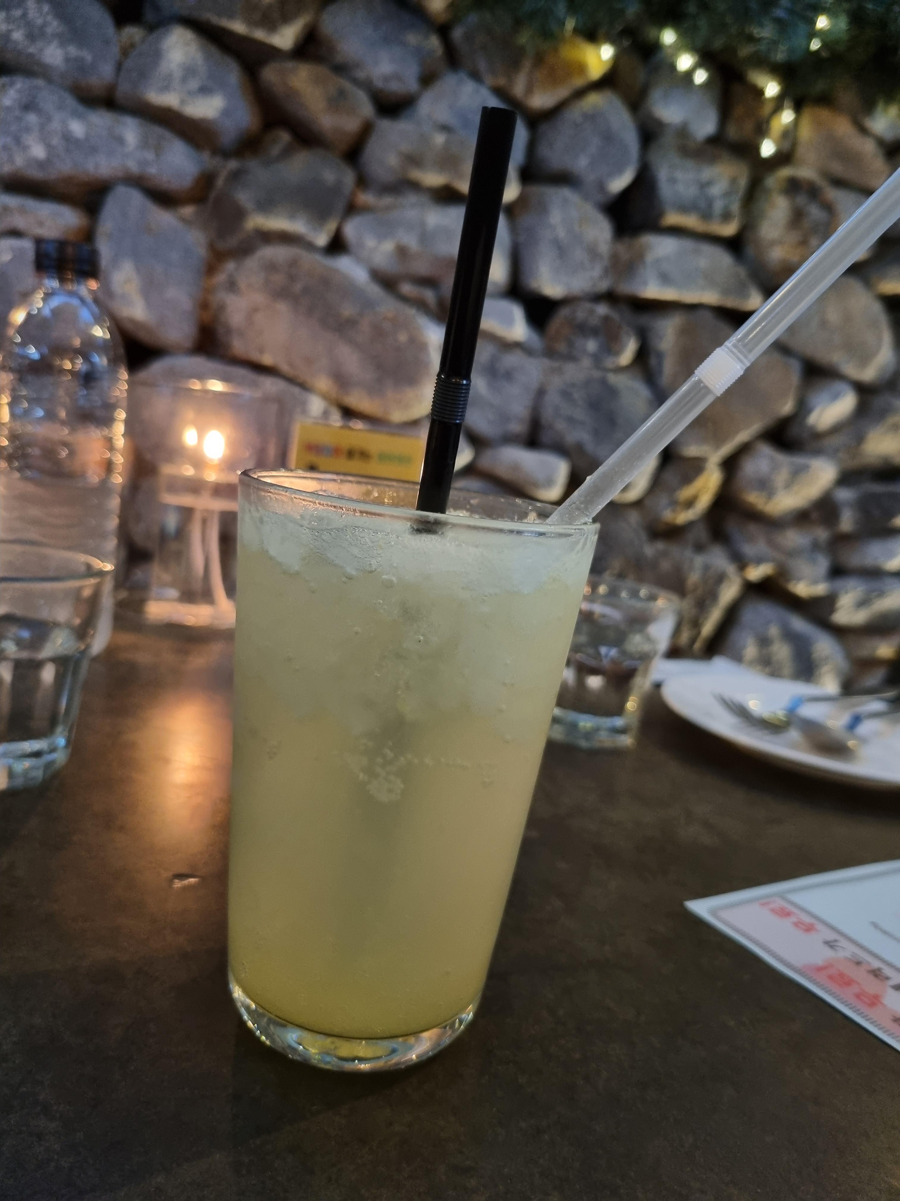 차를 가져와서 술을 마실 수 없었기에 아쉽지만 느끼한 맛을 대비해 에이드를 하나 주문해서 같이 먹습니다.