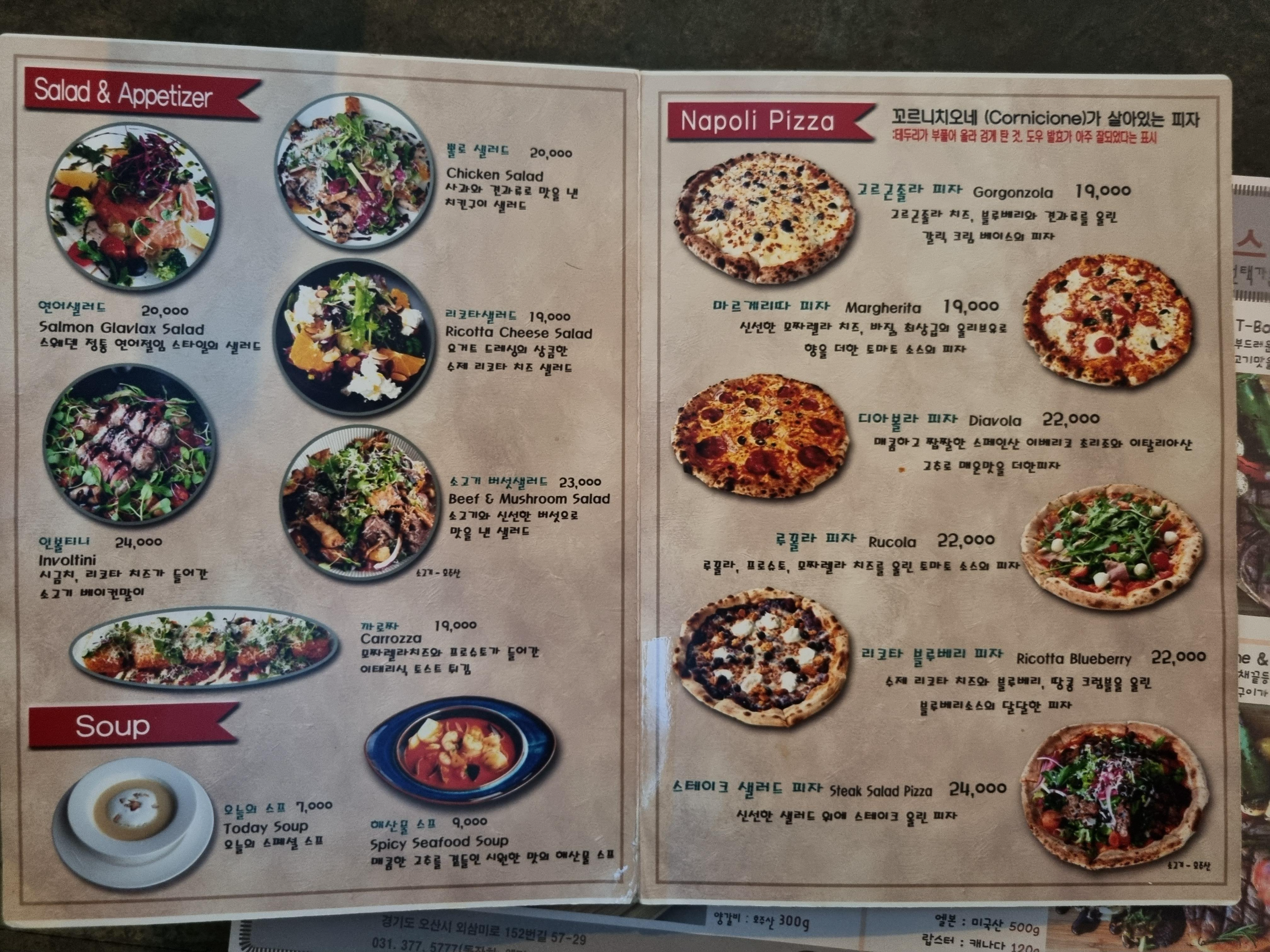 세트 메뉴 외에도 샐러드, 피자, 파스타, 리조또, 스테이크 등 단품으로 주문이 가능합니다.